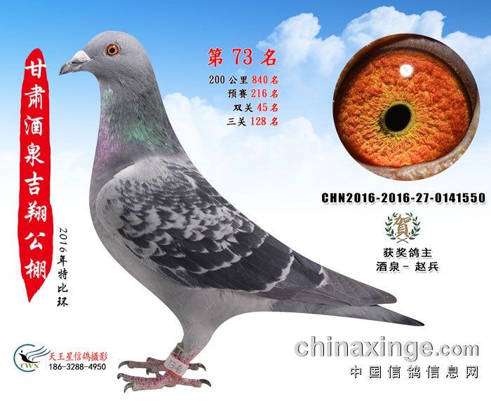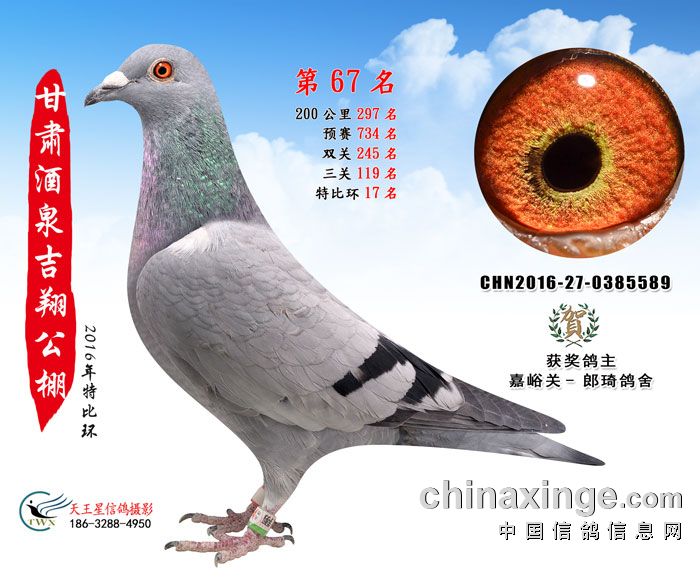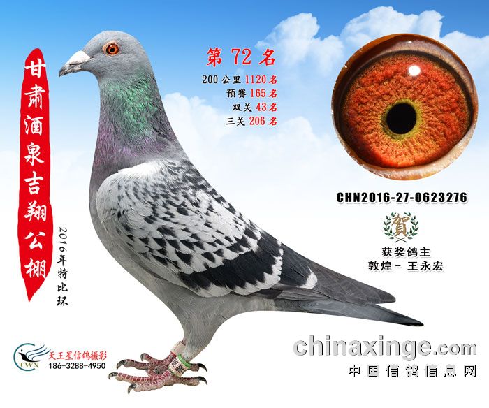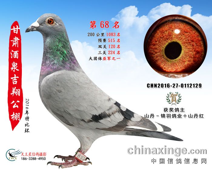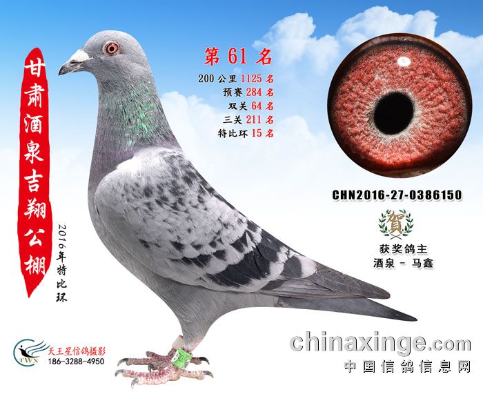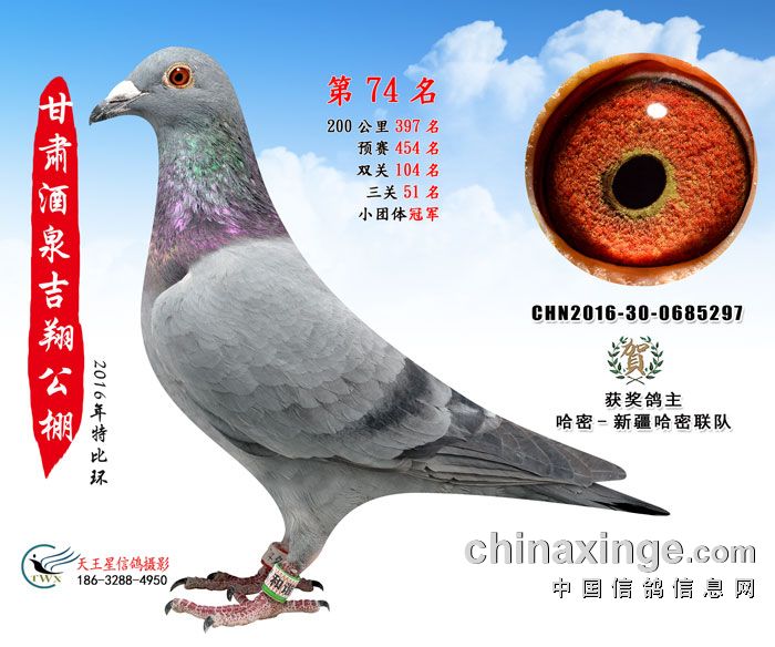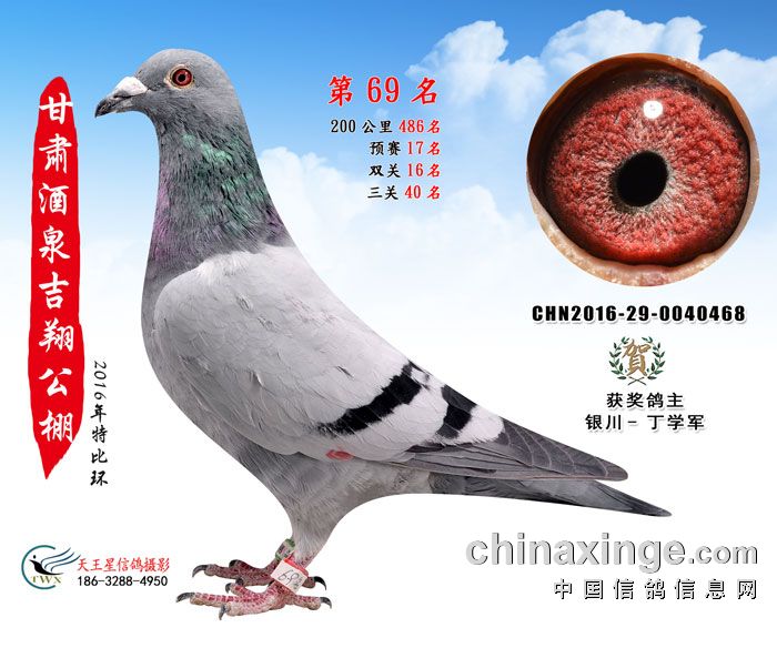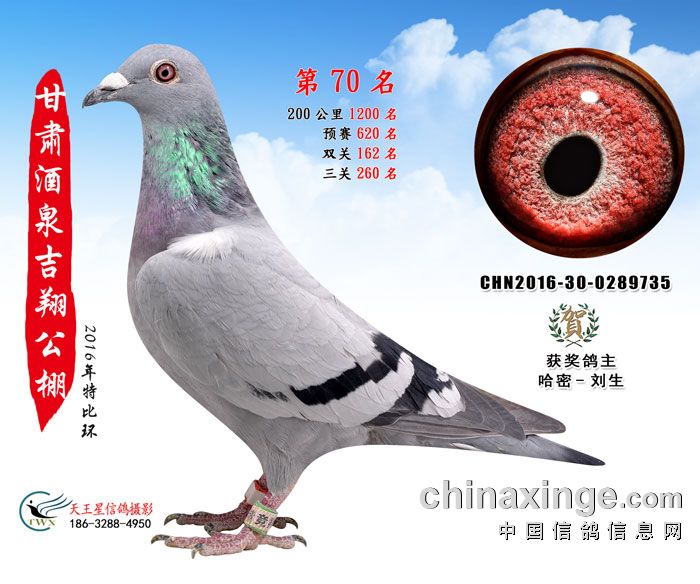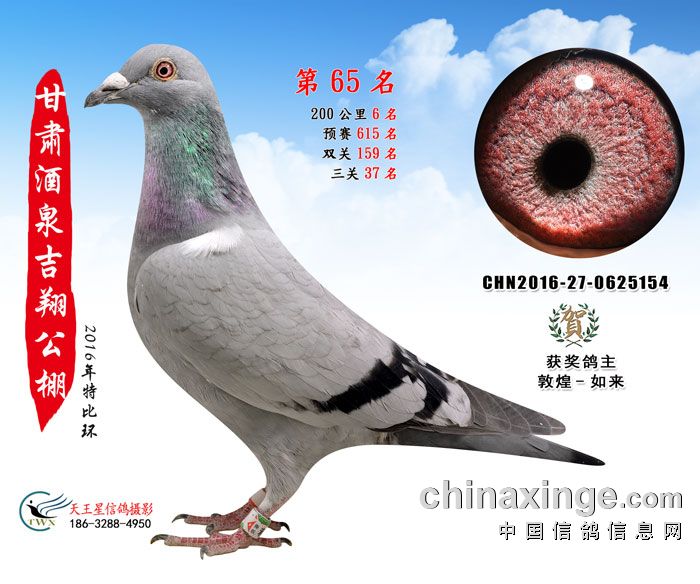 甘肃酒泉吉翔赛鸽公棚16年获奖鸽欣赏(61-75名)