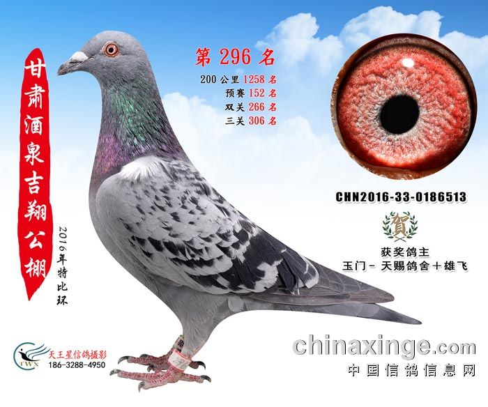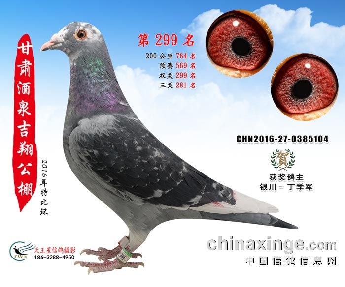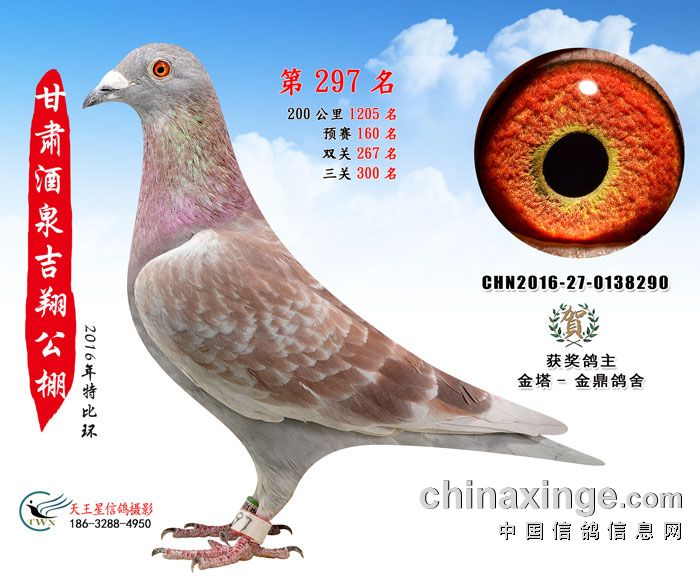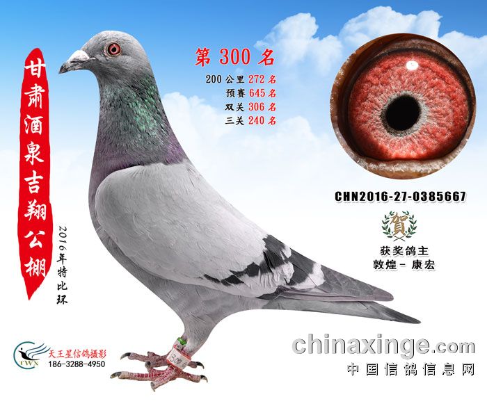 甘肃酒泉吉翔赛鸽公棚16年获奖鸽欣赏(286-300名)