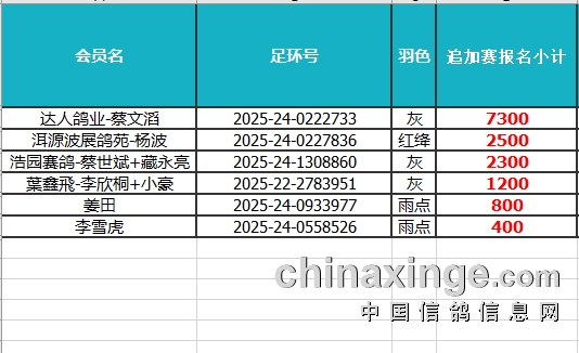 云南大理鑫翔赛鸽公棚40KM查棚站追加赛报名未上笼退费清单