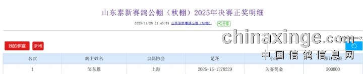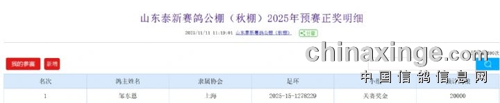热烈祝贺我棚会员上海-邹东恩老师在山东泰新赛鸽公棚荣获预决赛双冠军的好成绩!