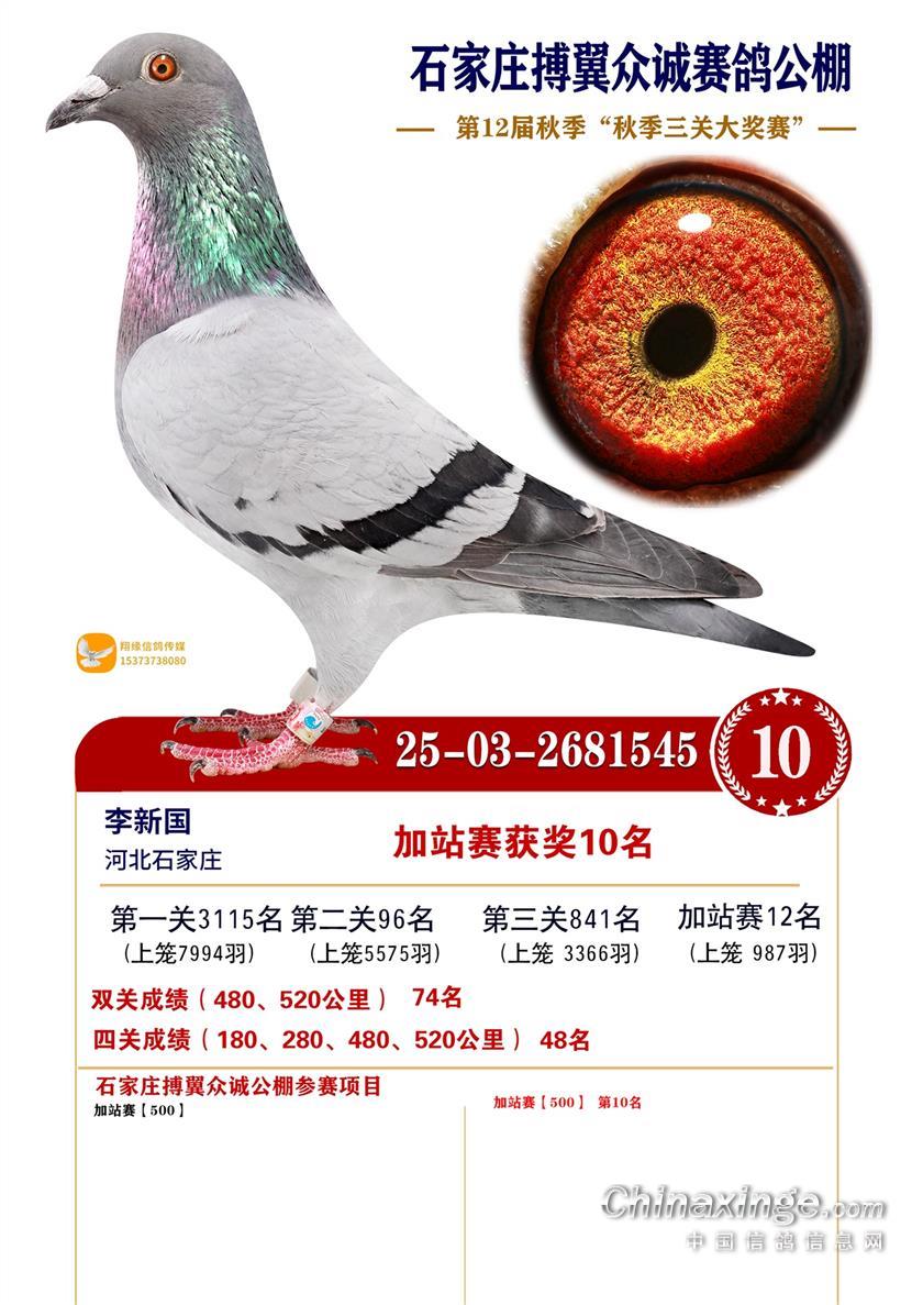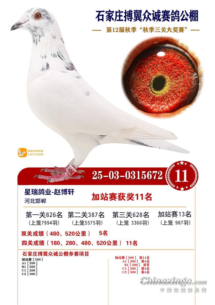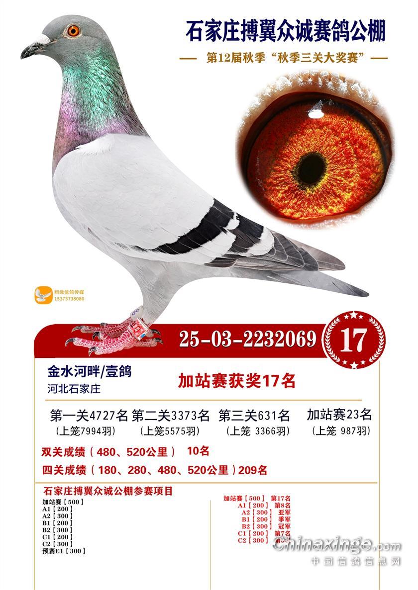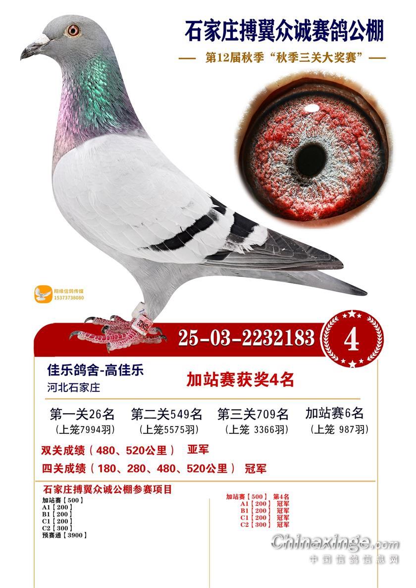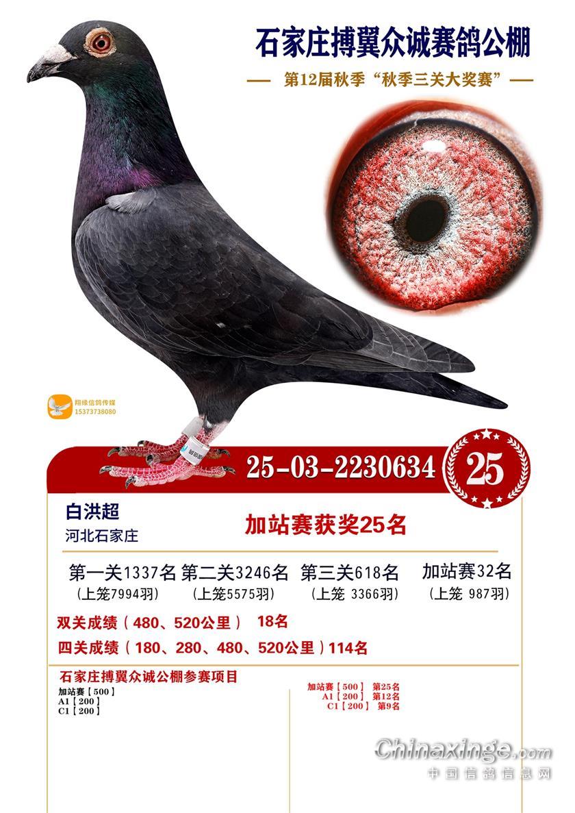 石家庄搏翼众诚公棚-2025年加站赛获奖鸽赏析