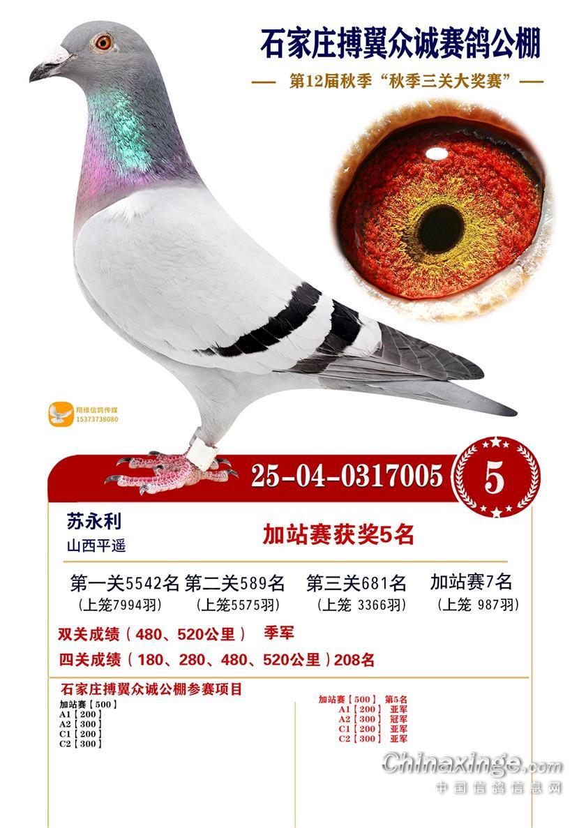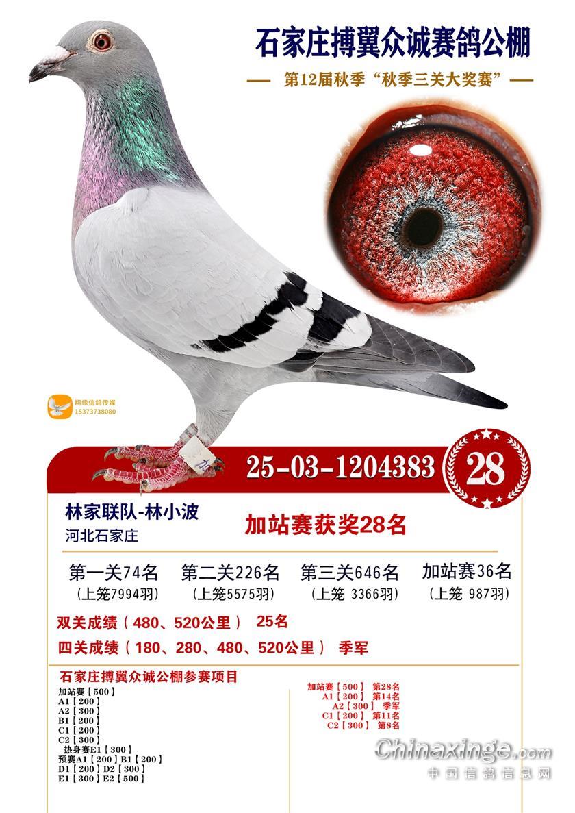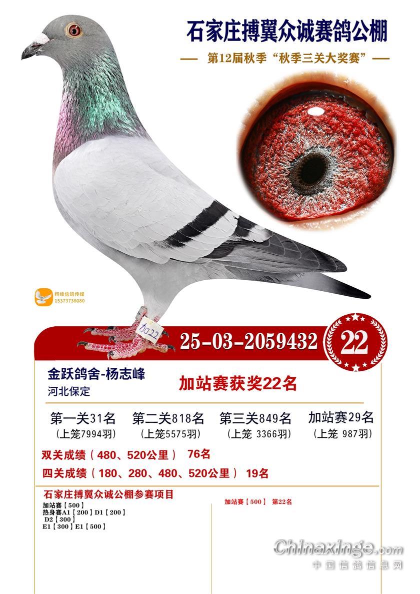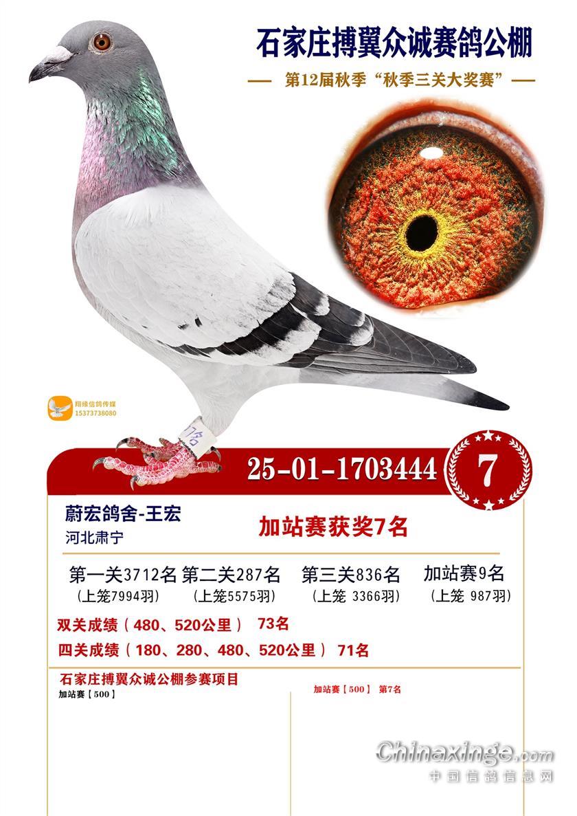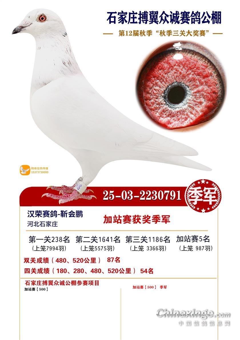 石家庄搏翼众诚公棚-2025年加站赛获奖鸽赏析