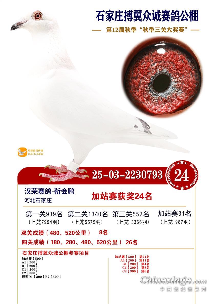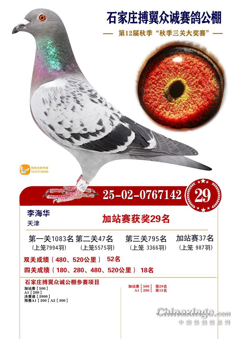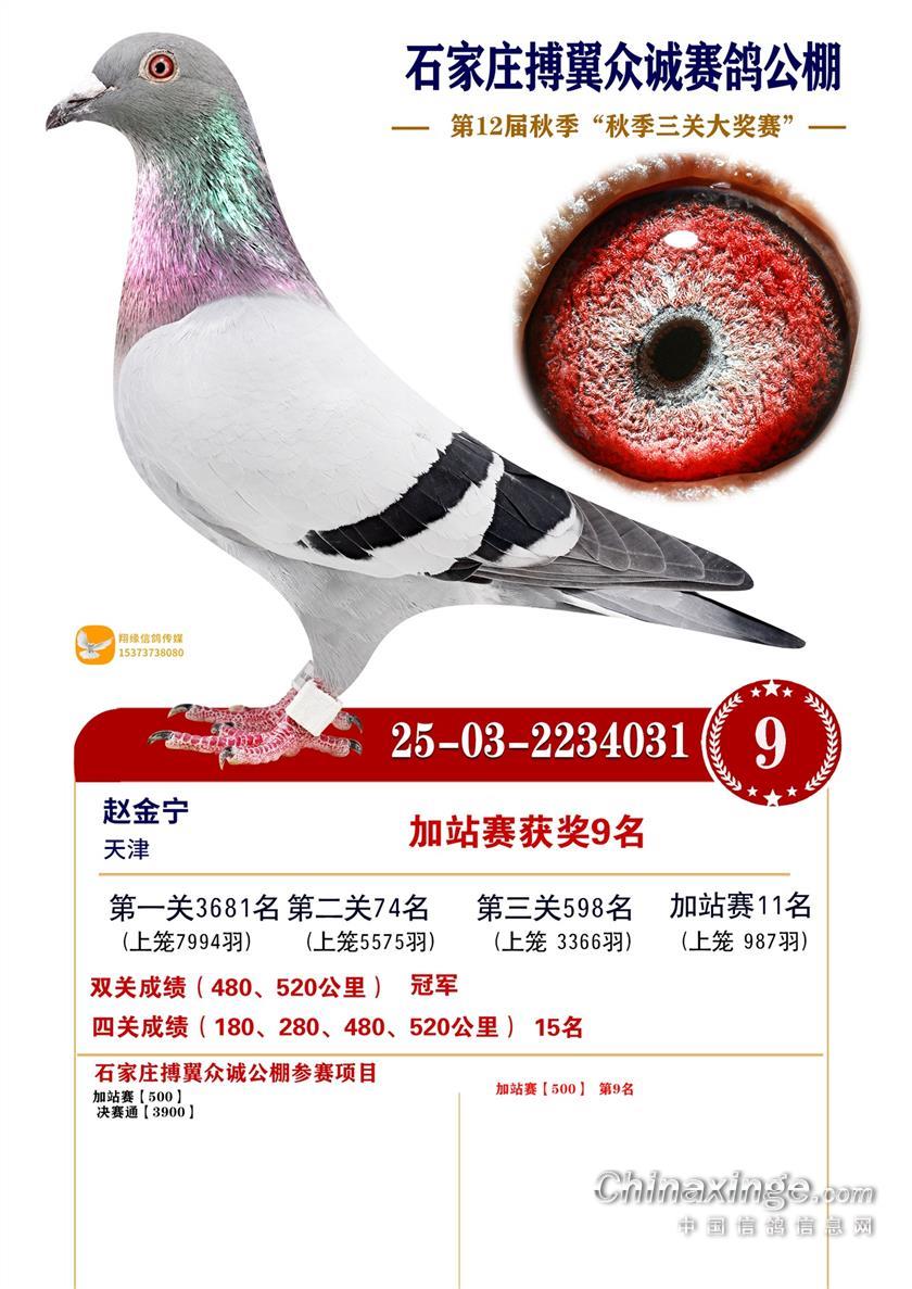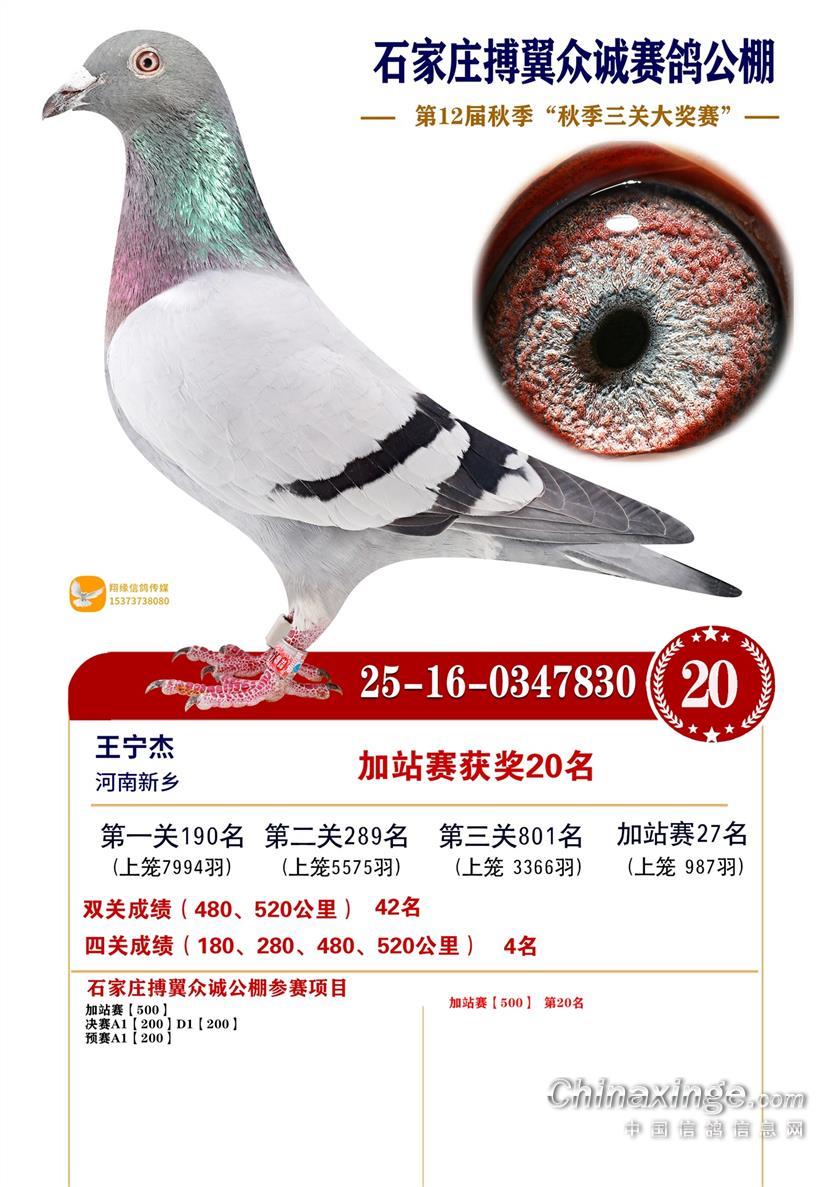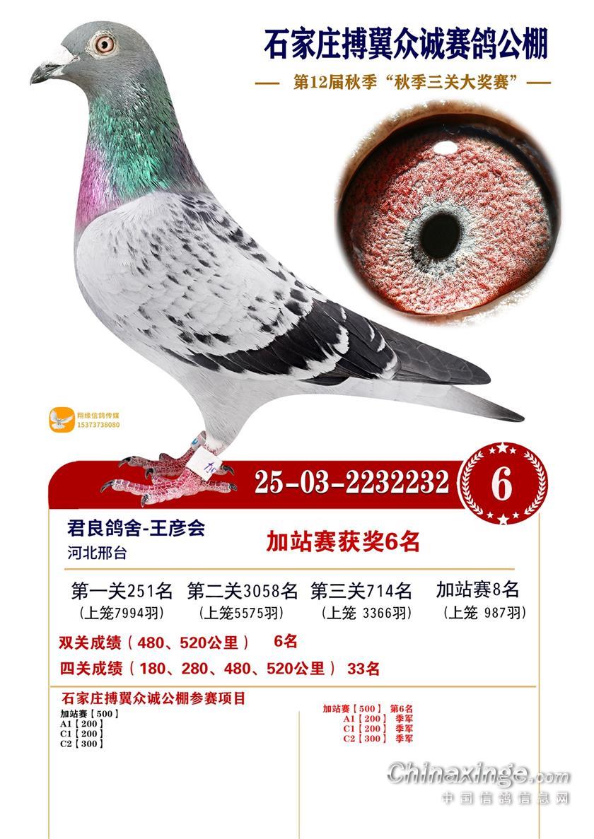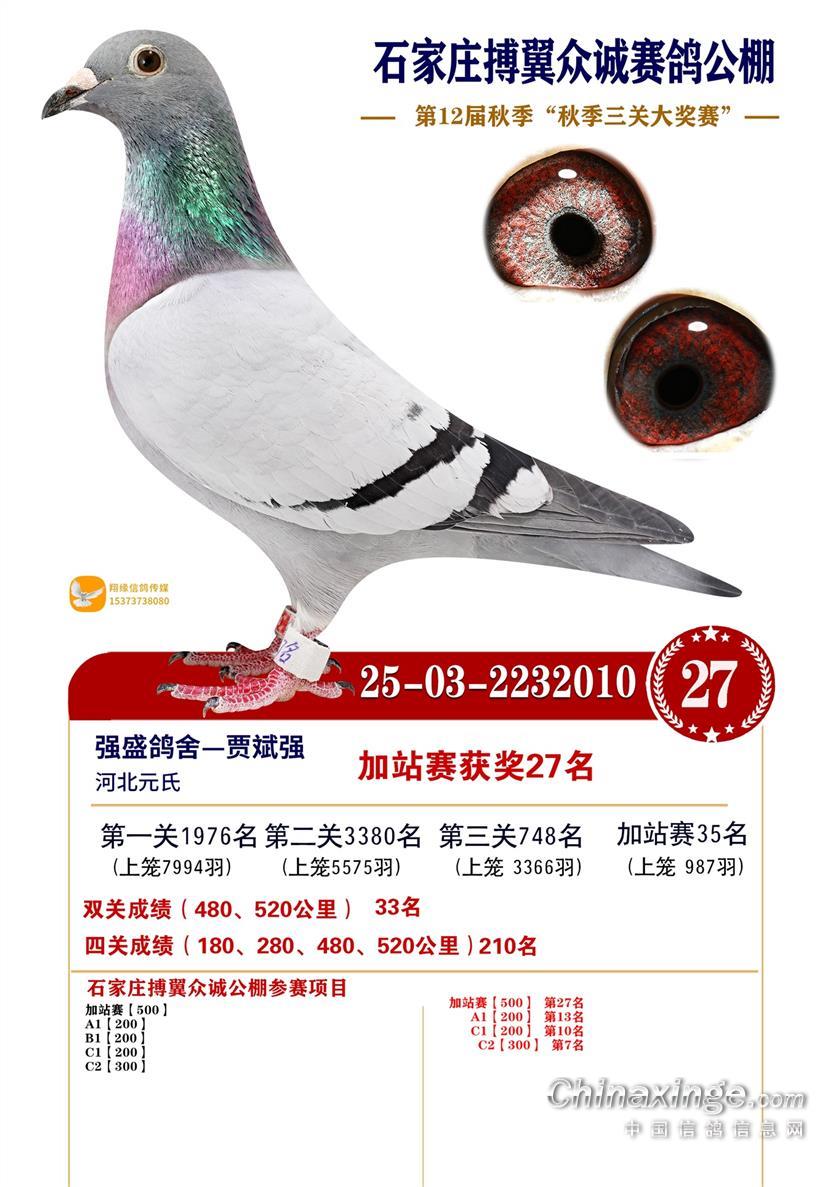 石家庄搏翼众诚公棚-2025年加站赛获奖鸽赏析
