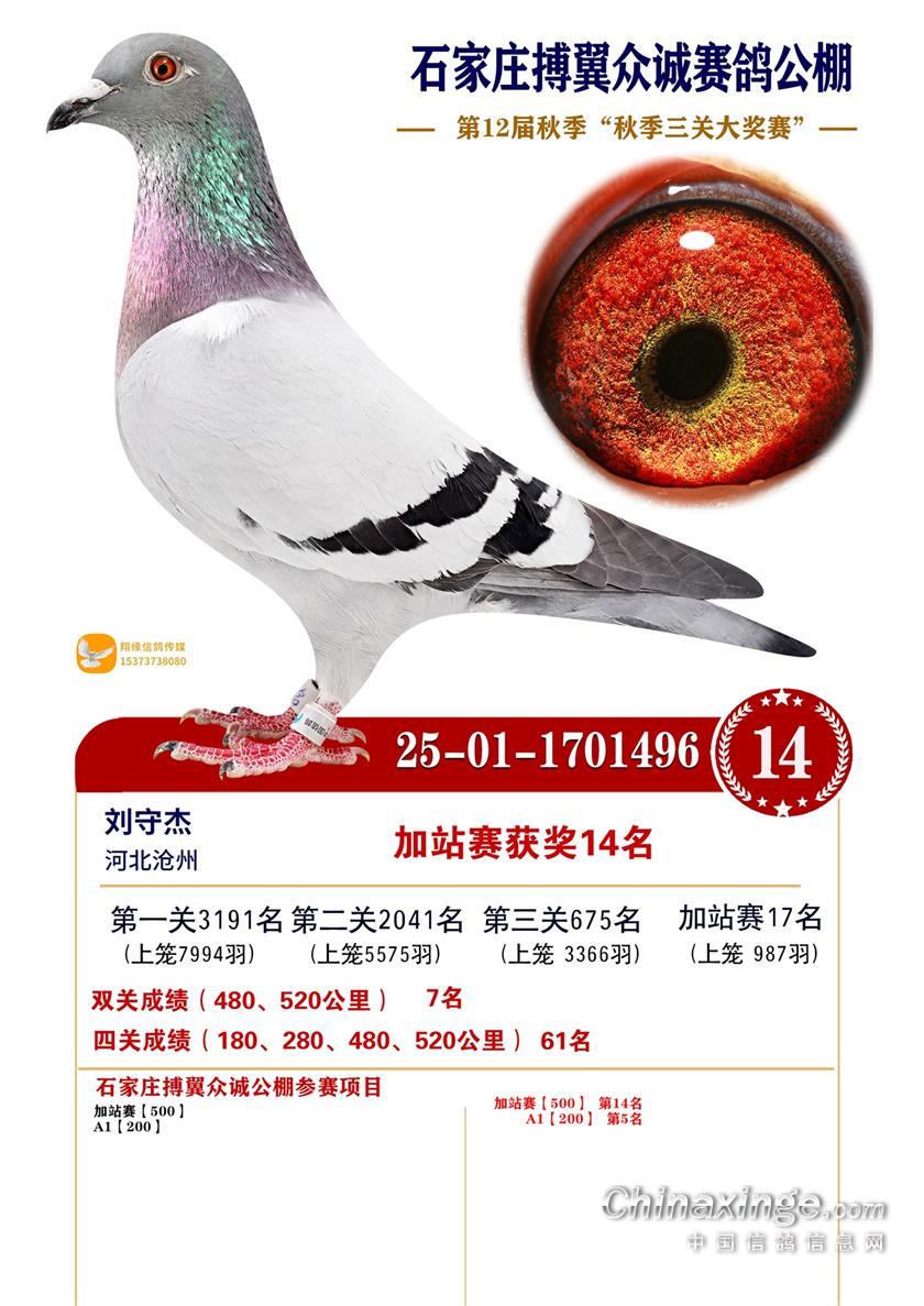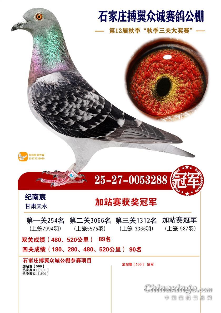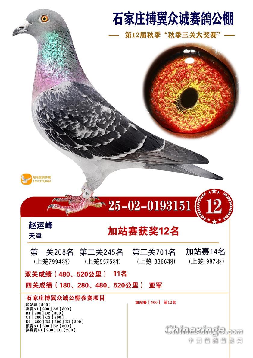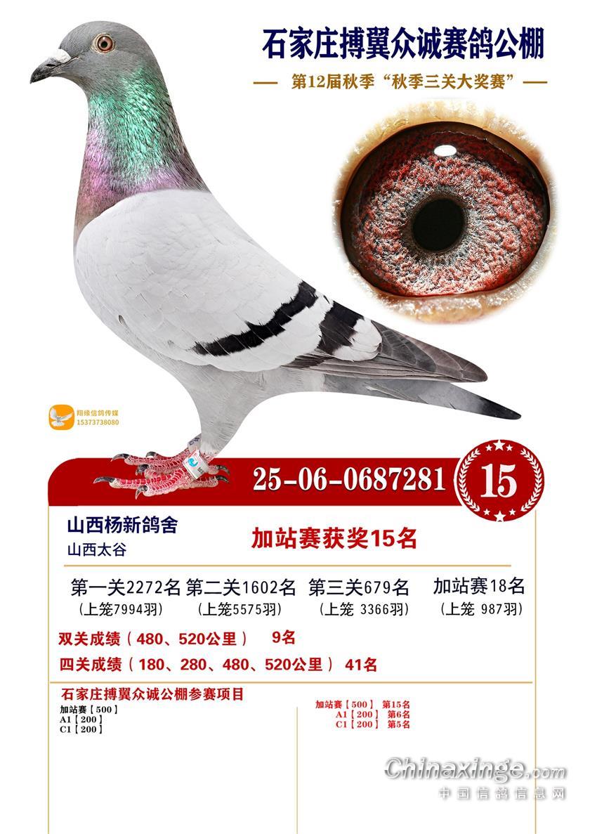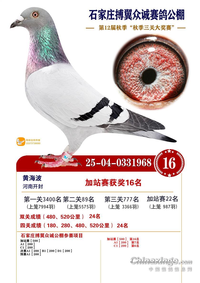 石家庄搏翼众诚公棚-2025年加站赛获奖鸽赏析