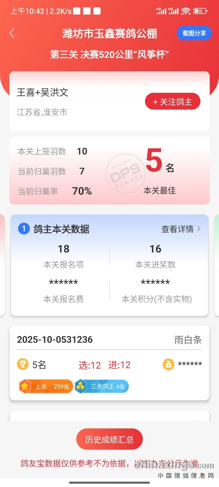 江苏云之翔公棚180公里热身赛成绩裁判签章