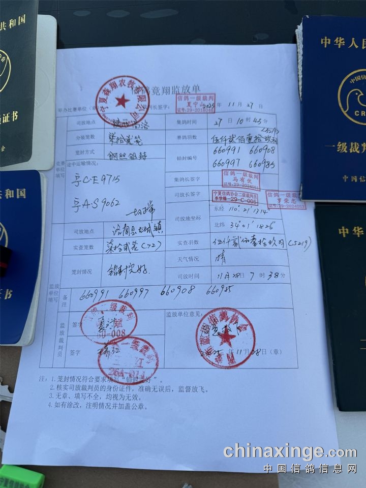 宁夏森翔赛鸽公棚566公里加站赛集鸽名单(按顺序)