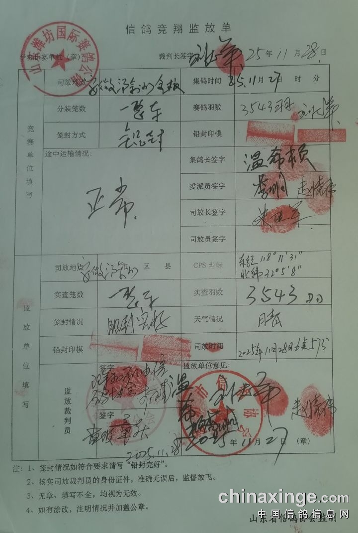 山东潍坊国际赛鸽公棚500公里决赛于2025年11月28日早6点57分在安徽滁州全椒服务区开笼。