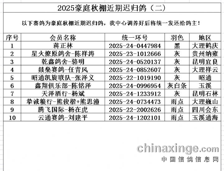 2025年东川豪庭秋棚近期迟归鸽(二)