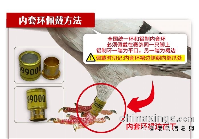 6、参赛鸽正环和电子环粘易碎贴和封闭式胶圈,赛鸽归反后若发现电子环和足环易碎贴人为破坏,则该鸽所有成绩作废。