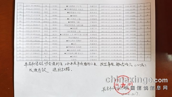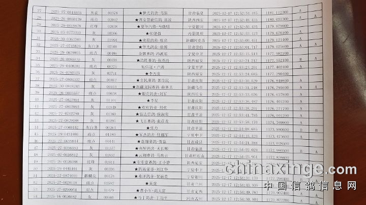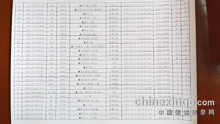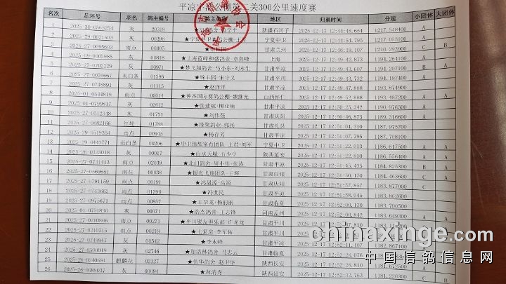 平凉宇浩公棚第二关300公里前100名获奖名单