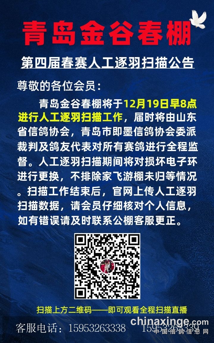 青岛金谷春棚 预交一羽参赛费及补组、并组公告