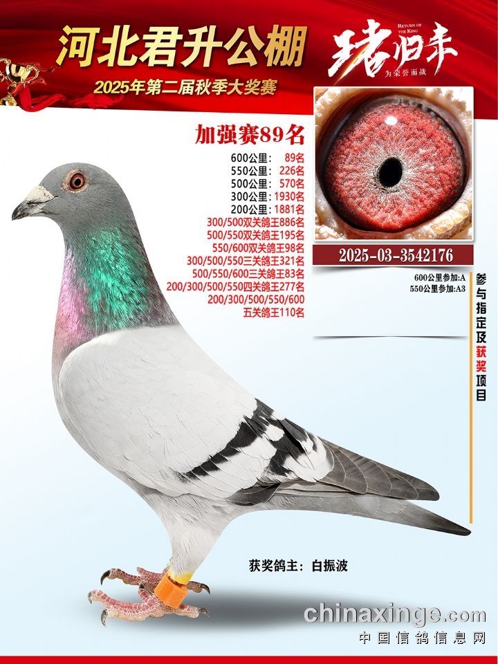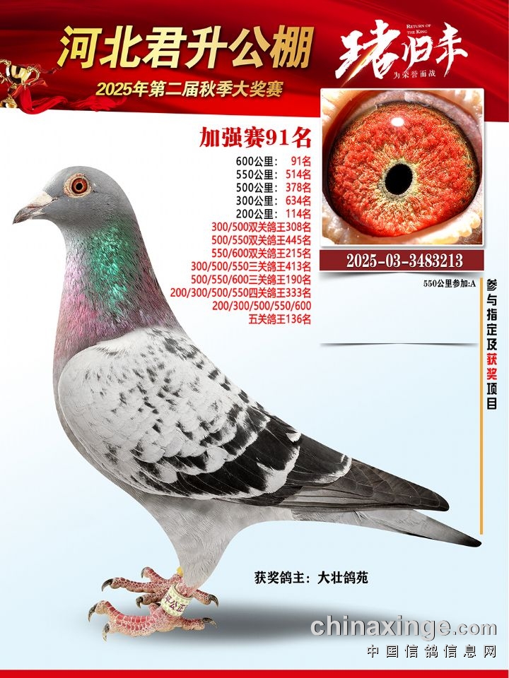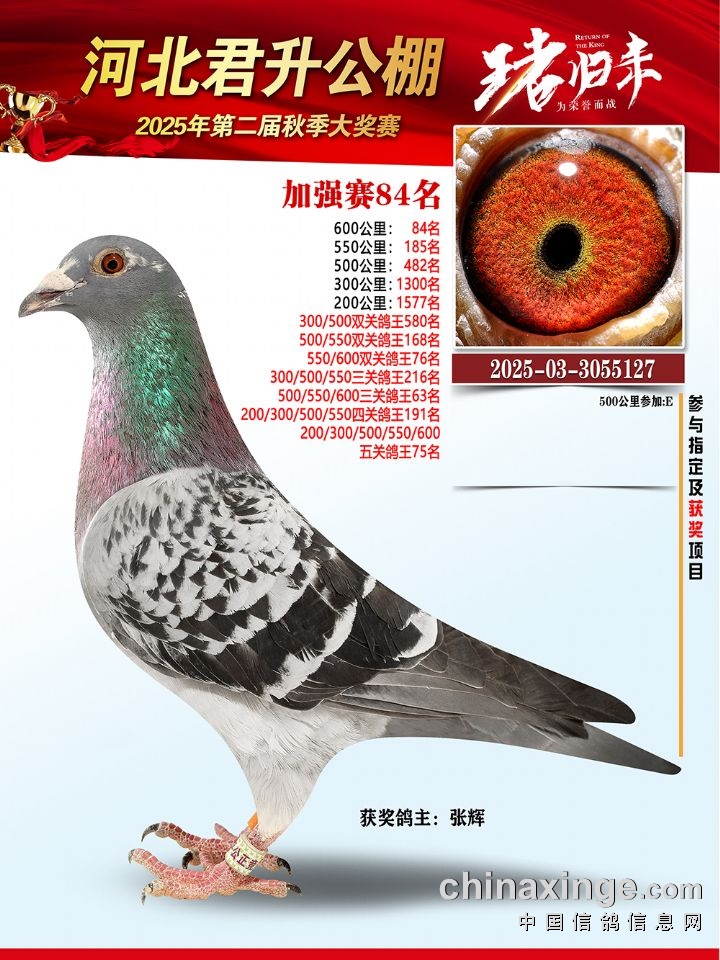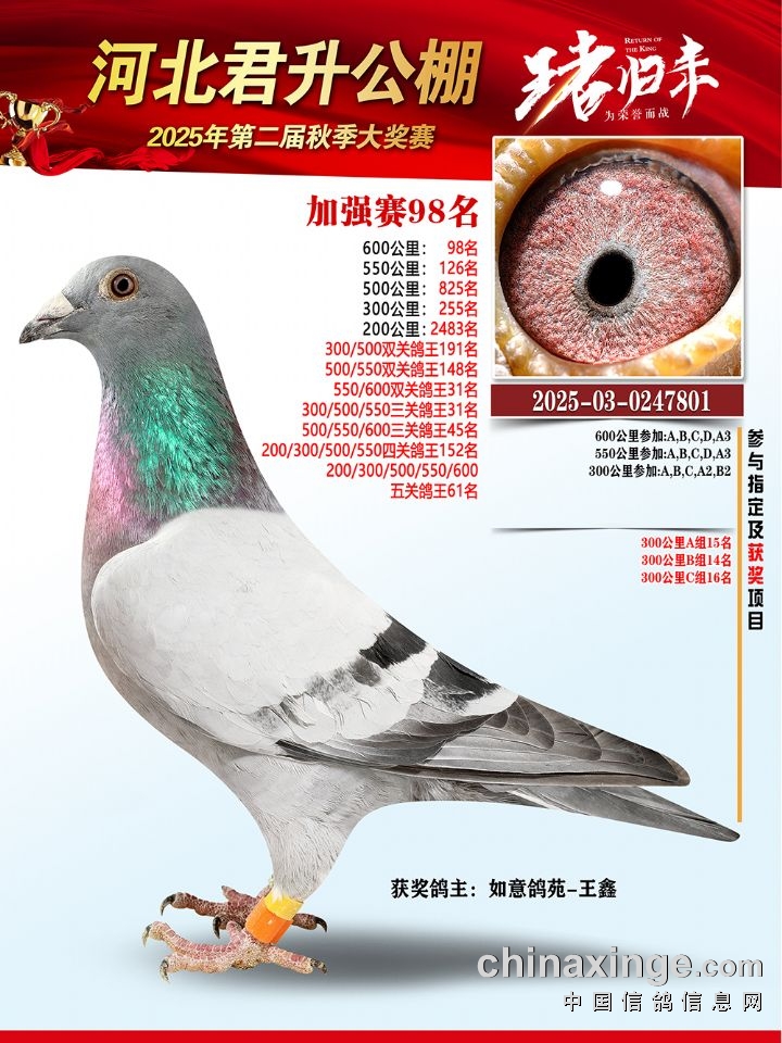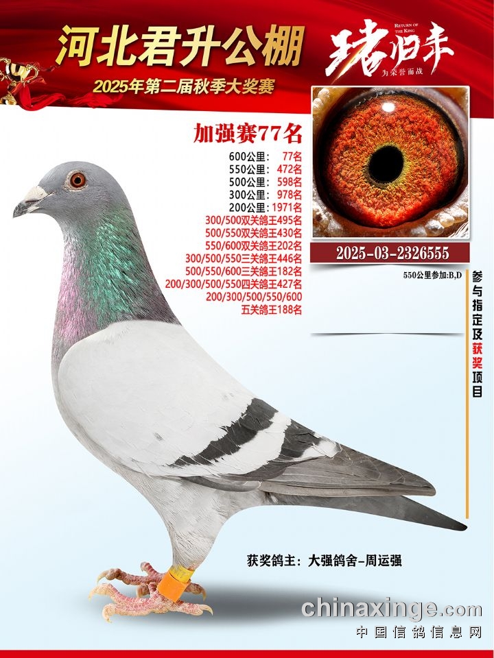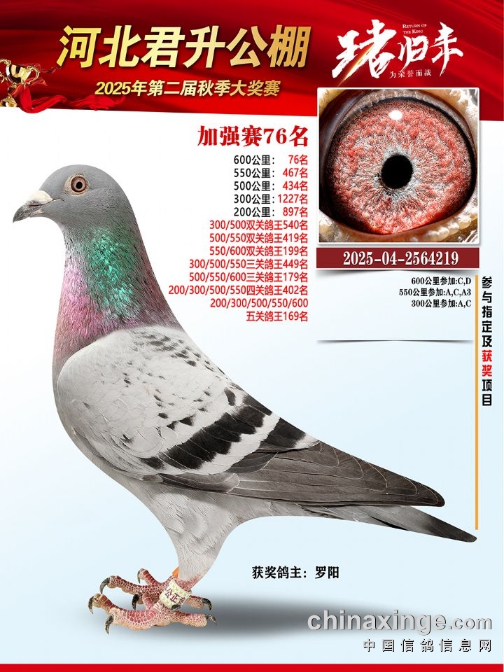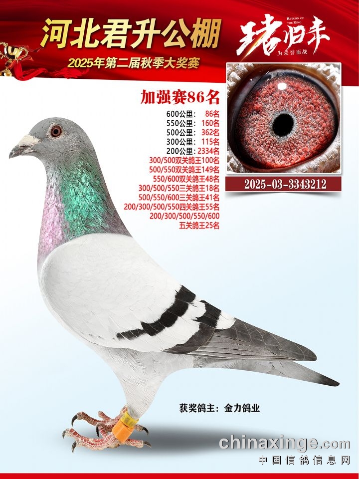 河北君升公棚秋赛550公里加站赛冠军-10名获奖鸽照片