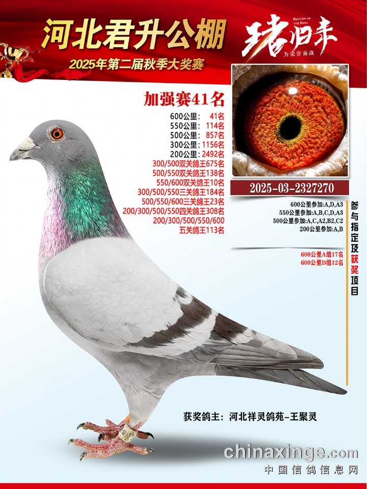 • 河北君升公棚秋赛600公里加强赛11-40名获奖鸽照片 (2025-12-19 9:31:02)