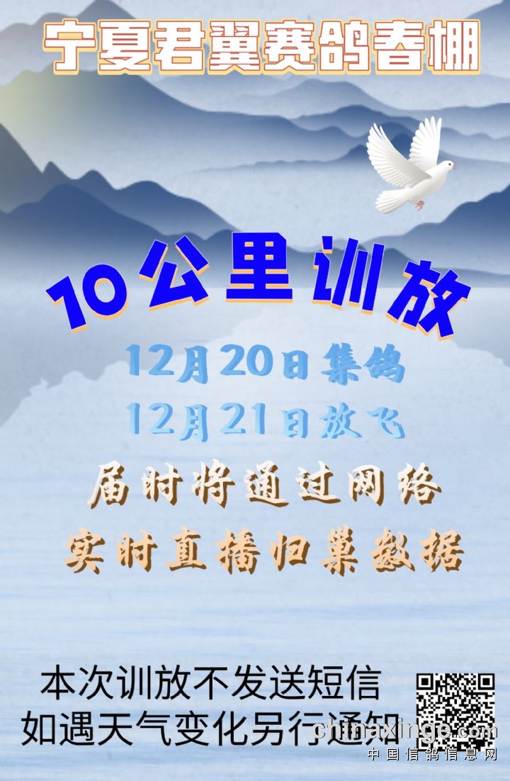 宁夏君翼赛鸽公棚(春棚)第四站10公里训放通知