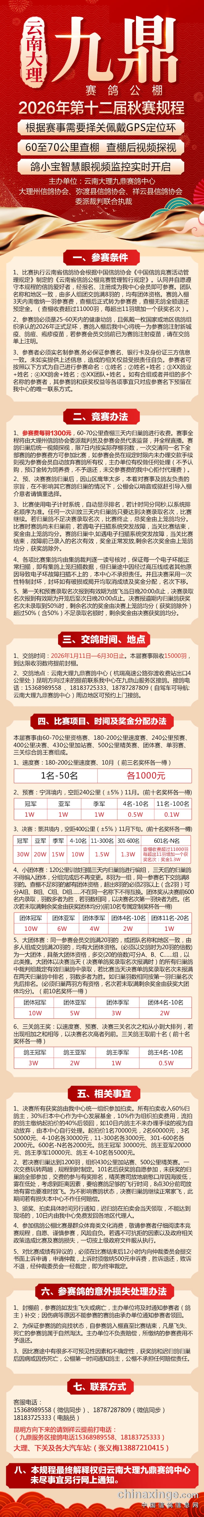 2026年云南大理九鼎赛鸽中心第(十二届)秋赛规程