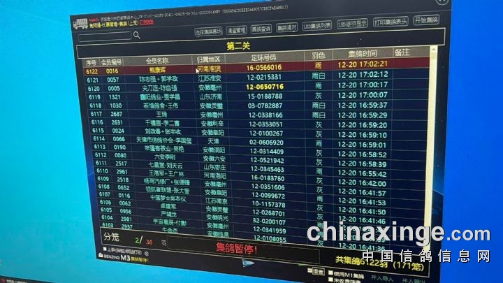 亳州药都赛鸽中心2025年12月20日第二关集鸽数据(按集鸽顺序排序)