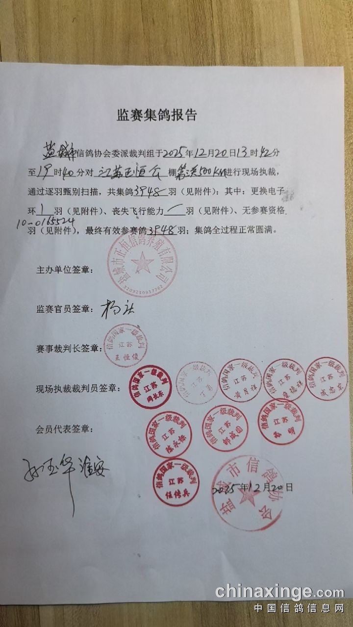 江苏正恒公棚:(500公里)第三关上笼羽色修改明细