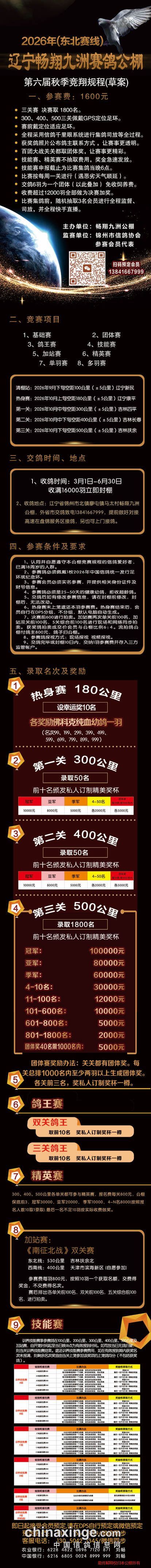辽宁畅翔九洲赛鸽公棚2026年第六届竞赛规程