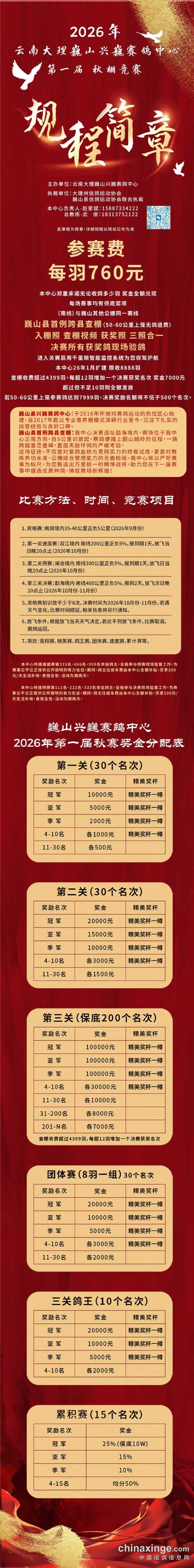 兴巍赛鸽:2026年(第一届)秋赛简章
