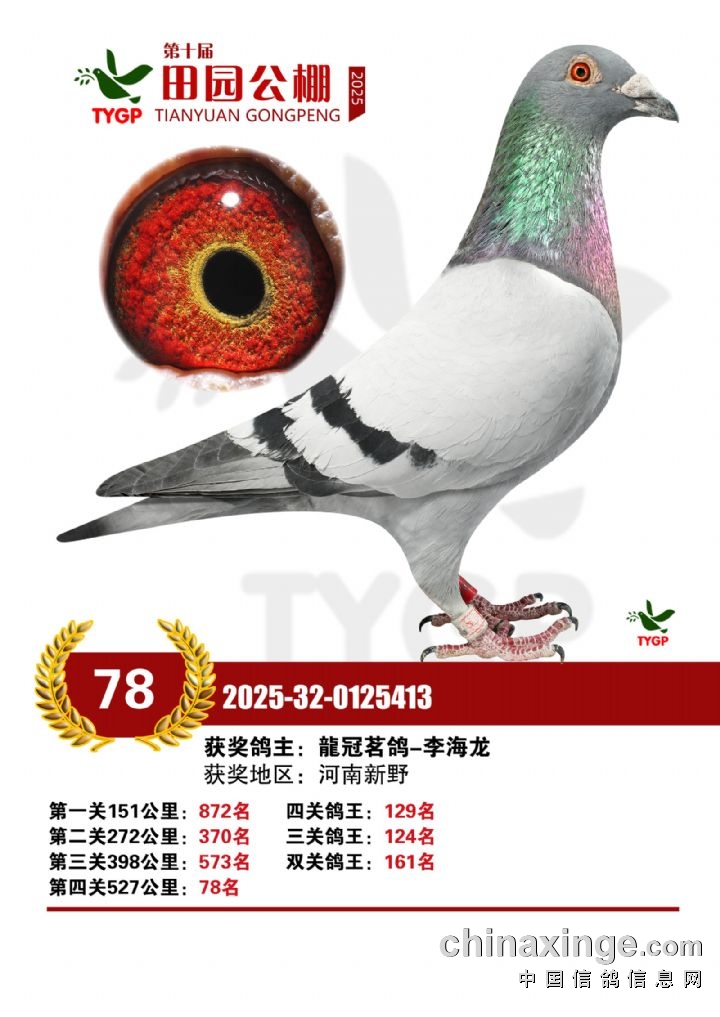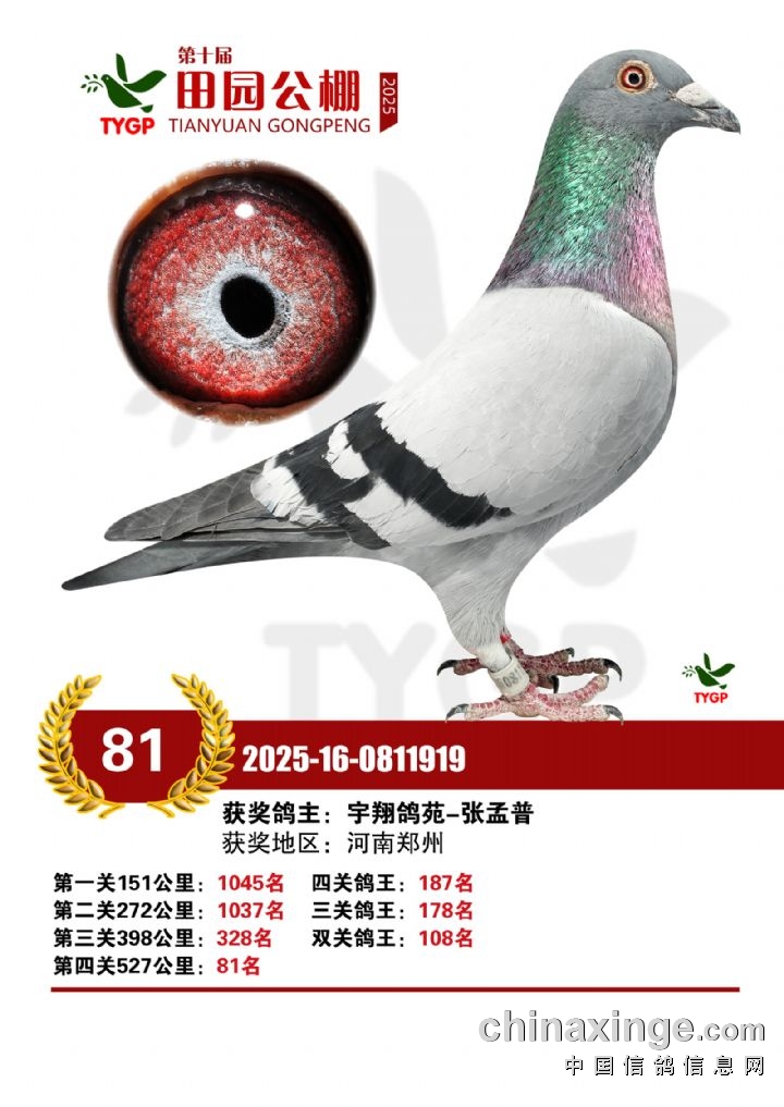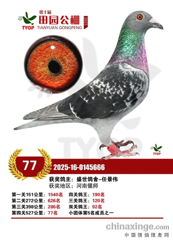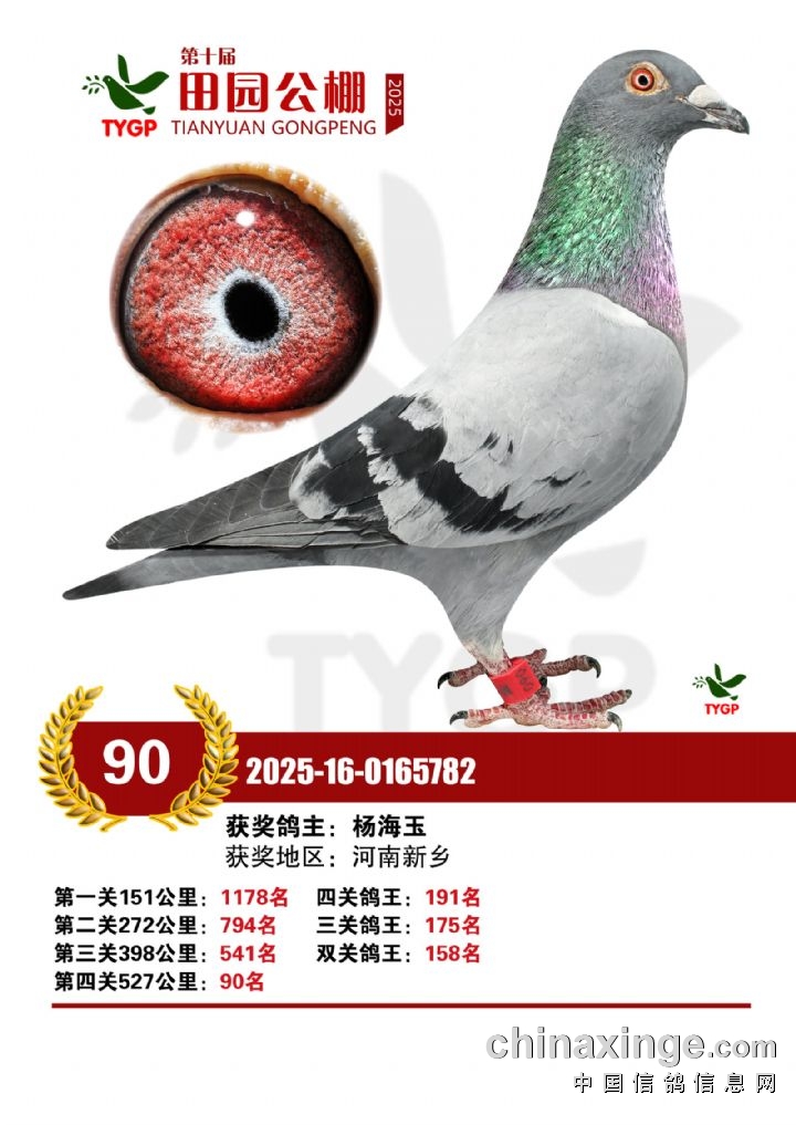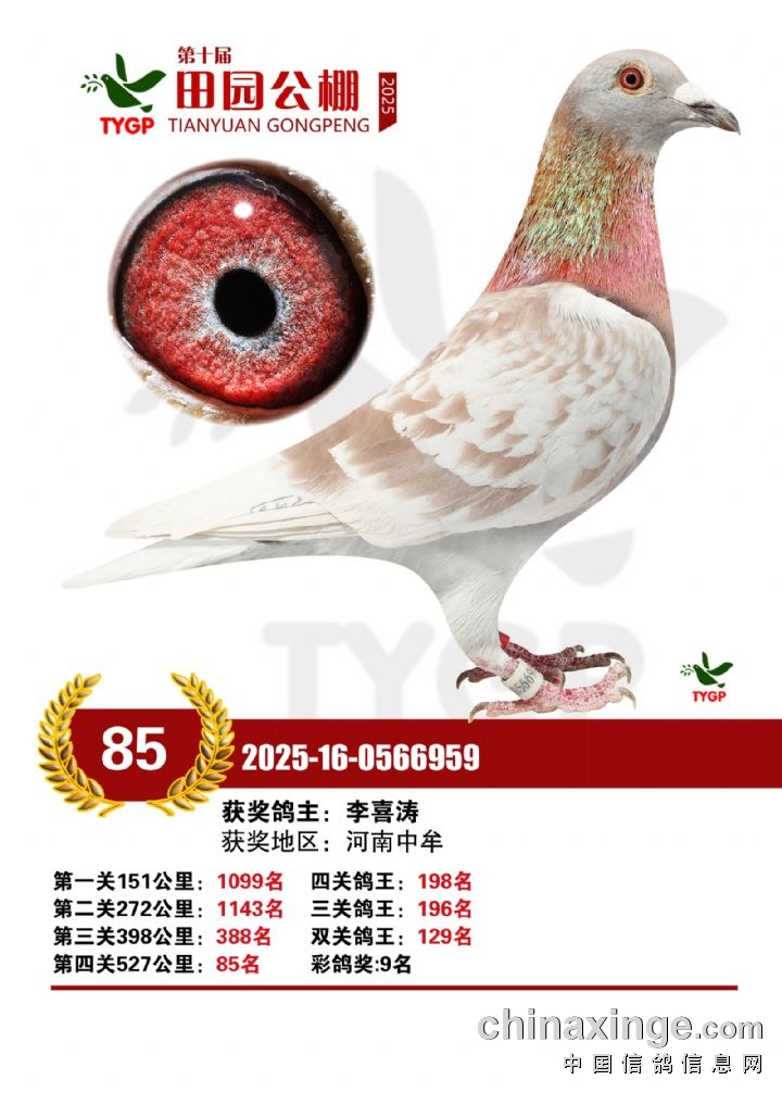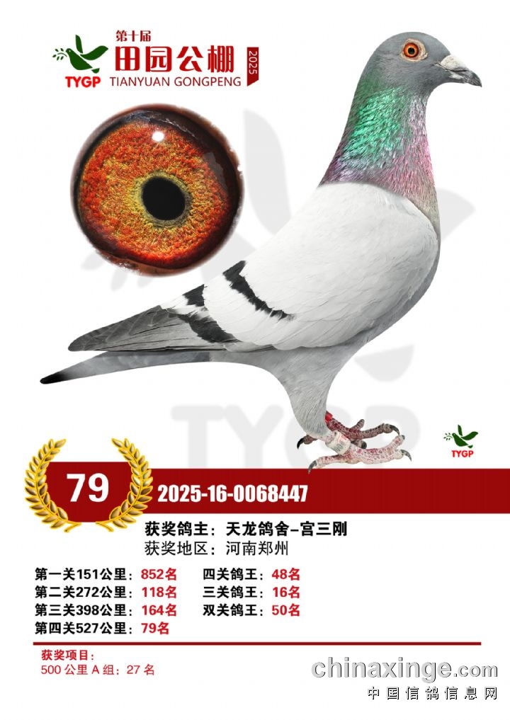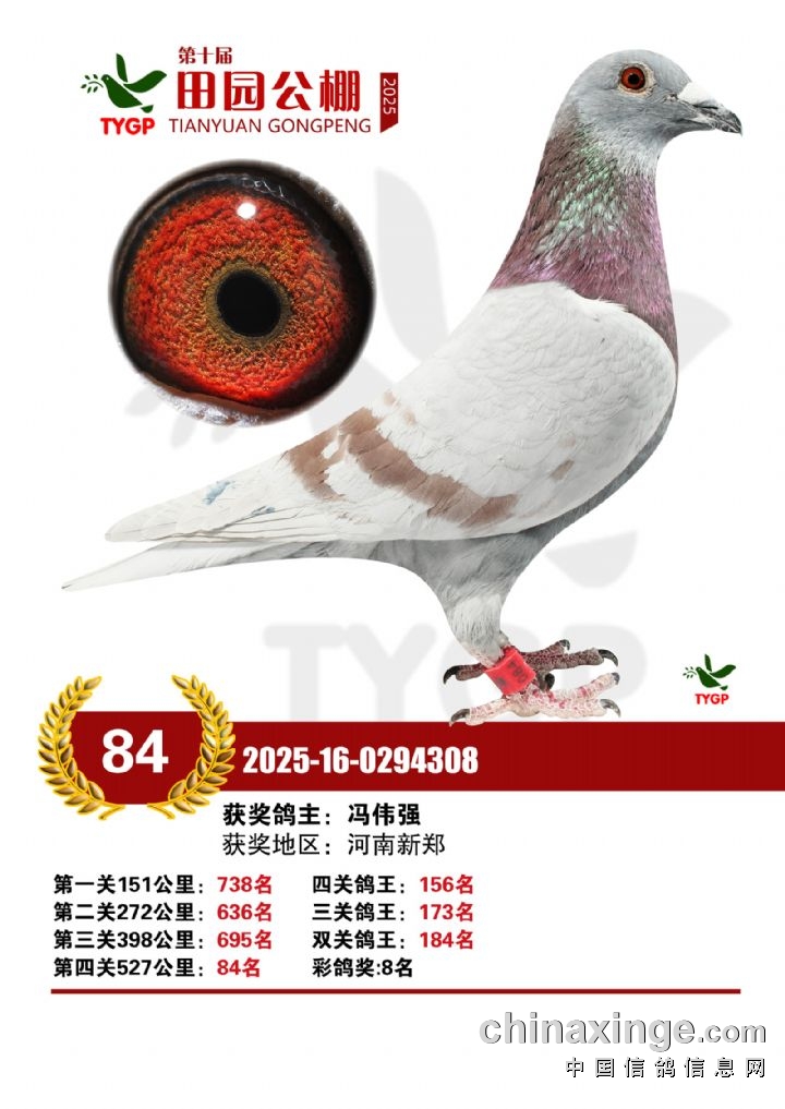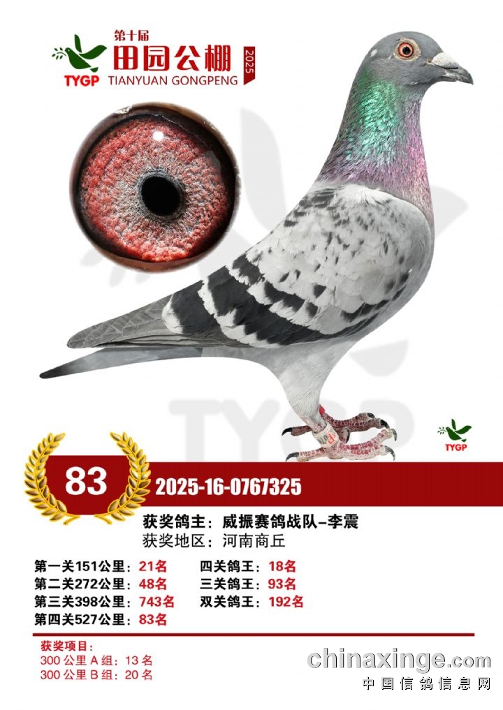 郑州田园公棚决赛获奖鸽照片166-180名