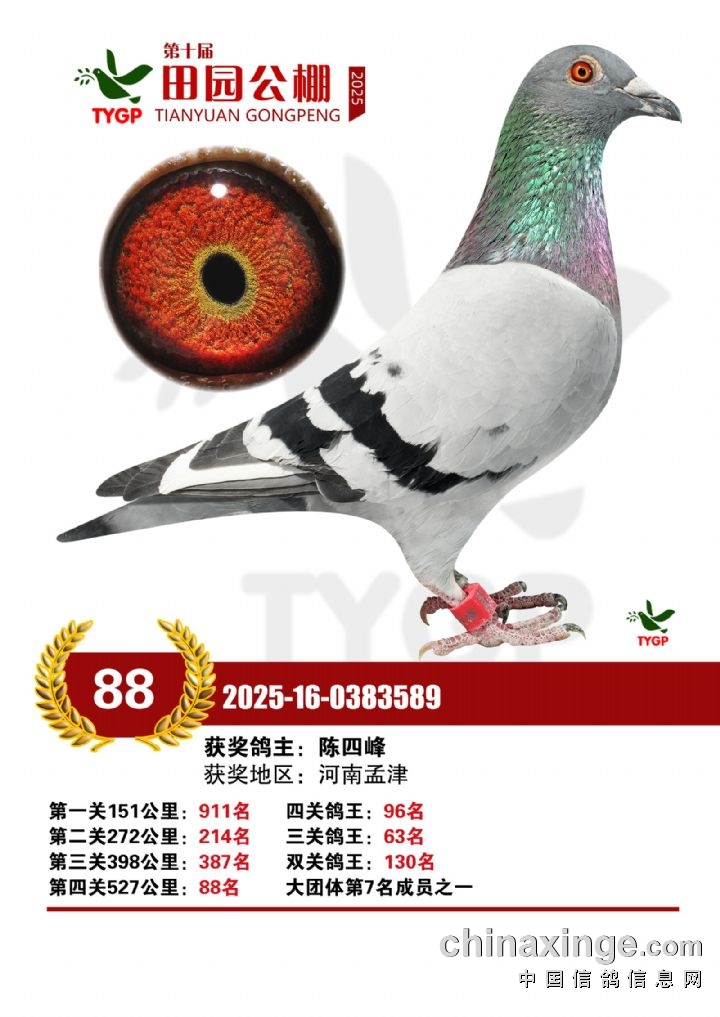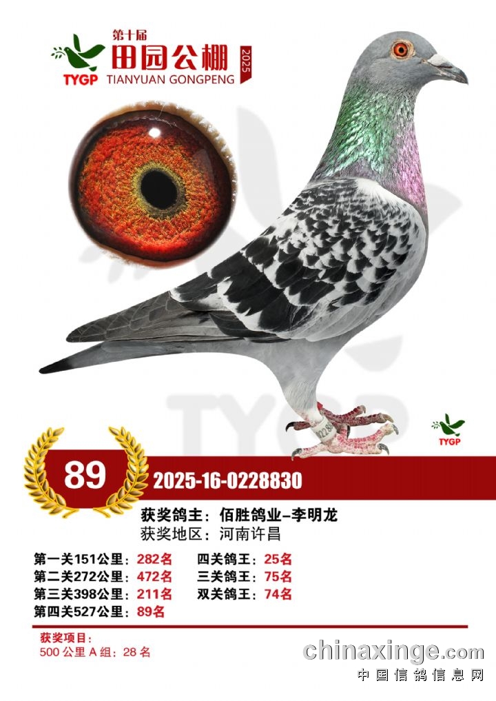 郑州田园公棚决赛获奖鸽照片76-90名