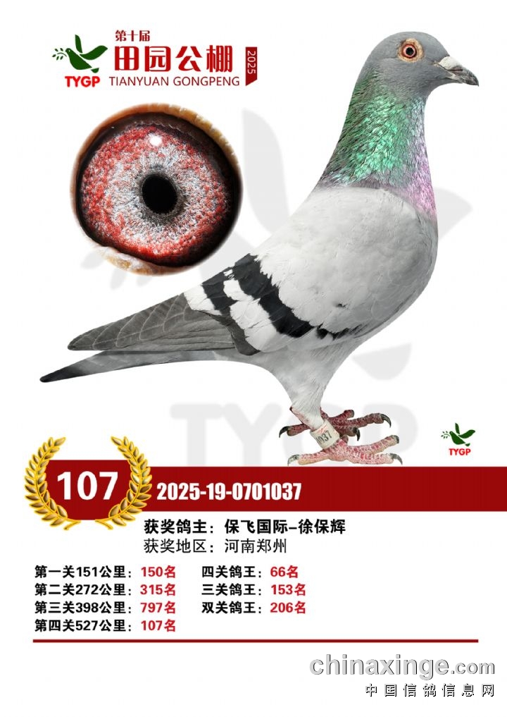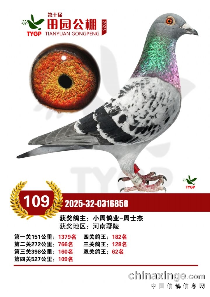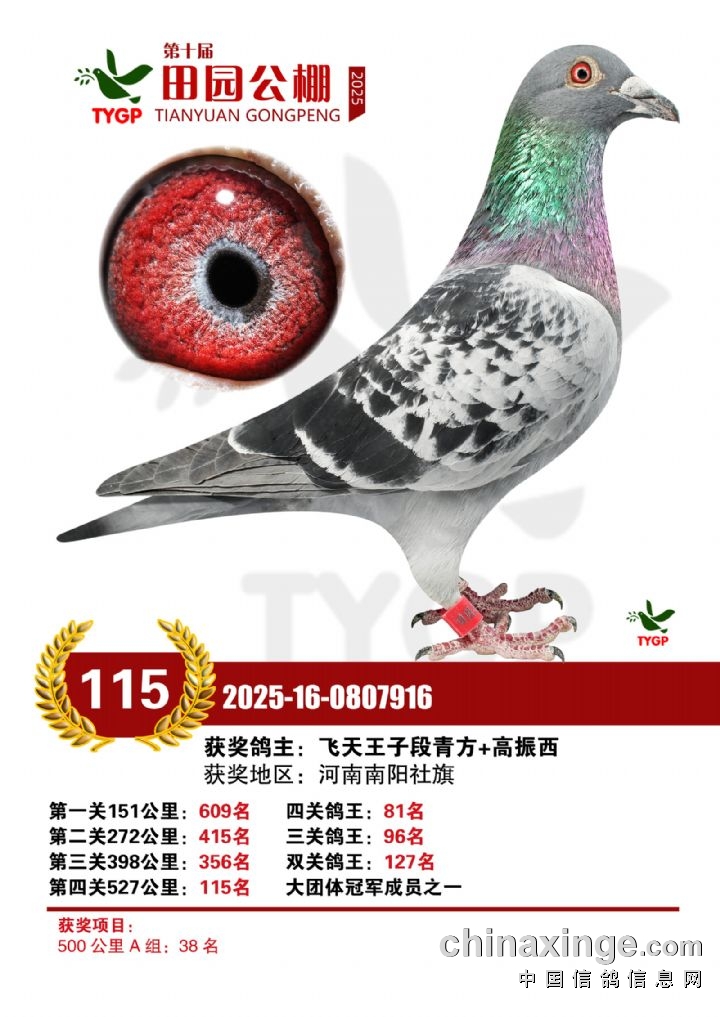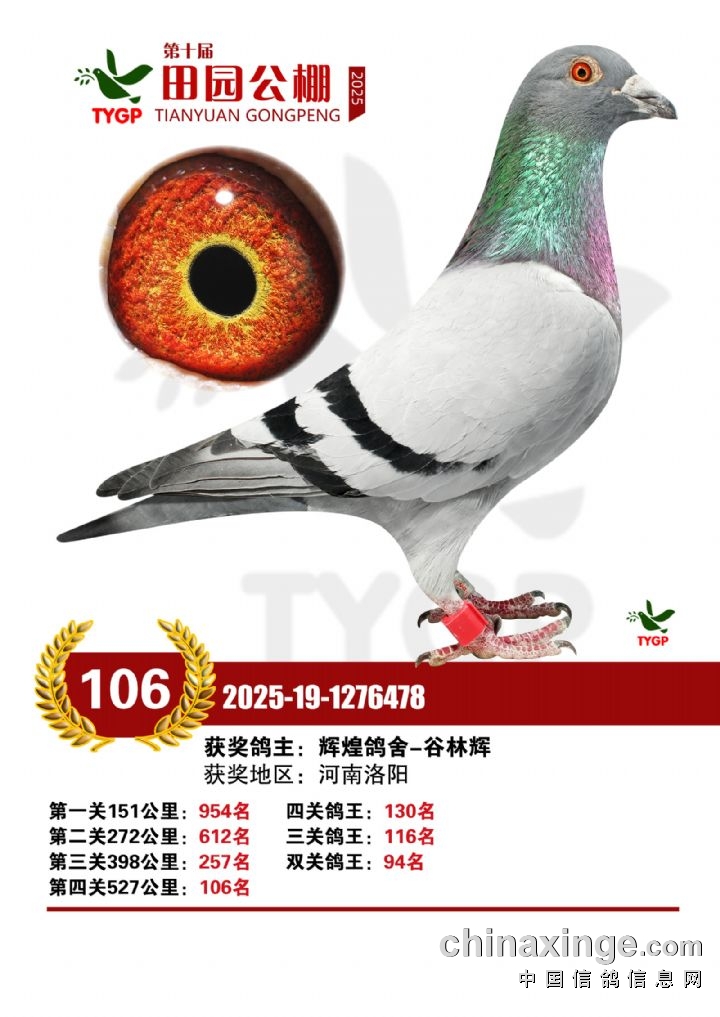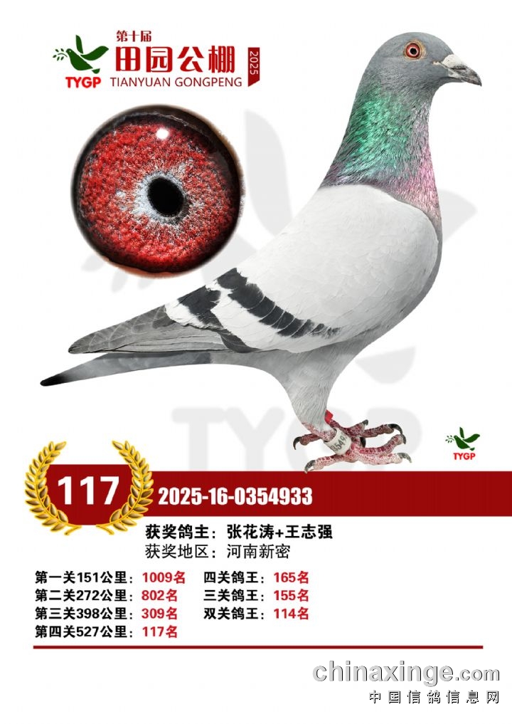 郑州田园公棚决赛获奖鸽照片106-120名