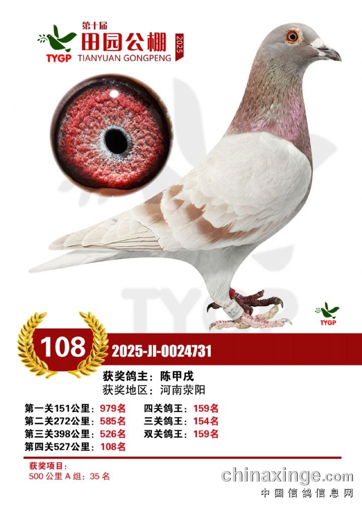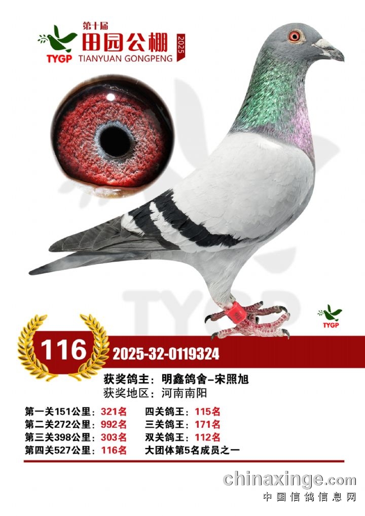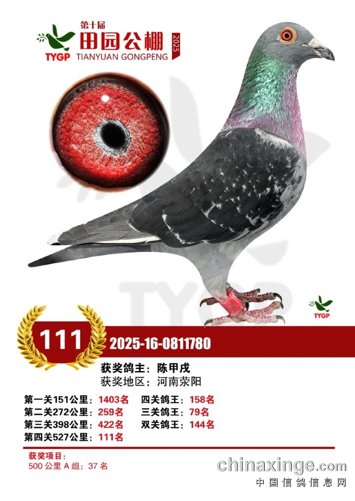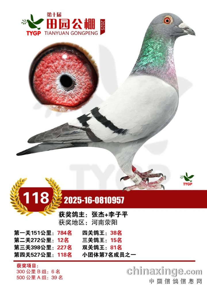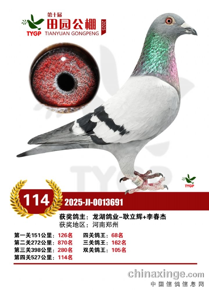 郑州田园公棚决赛获奖鸽照片106-120名