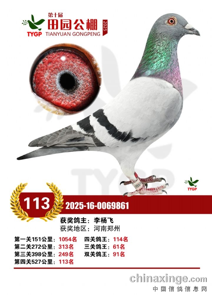 郑州田园公棚决赛获奖鸽照片166-180名