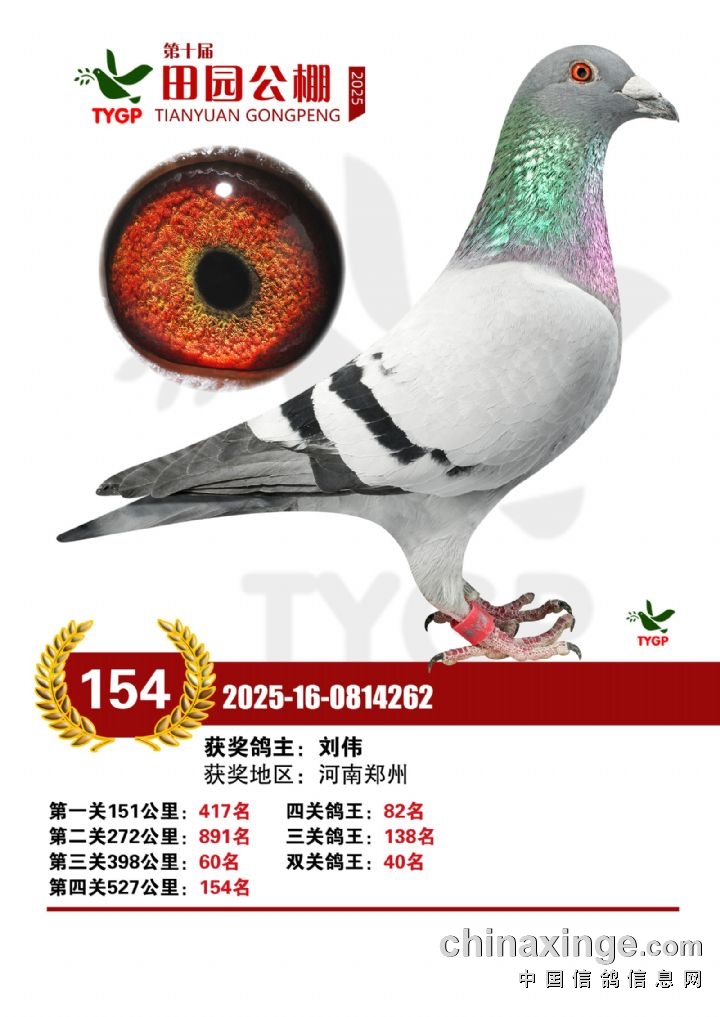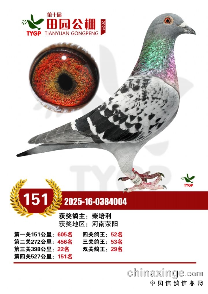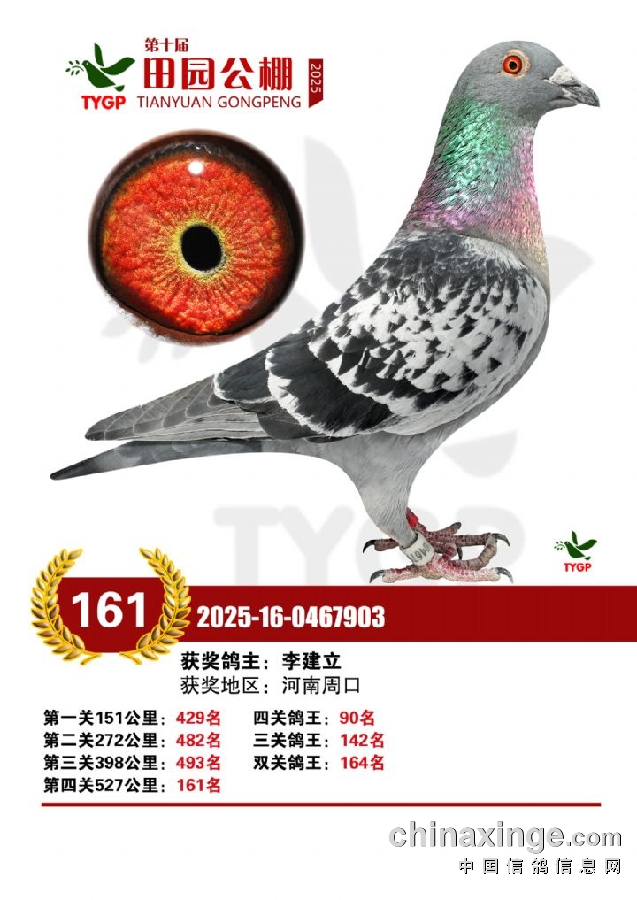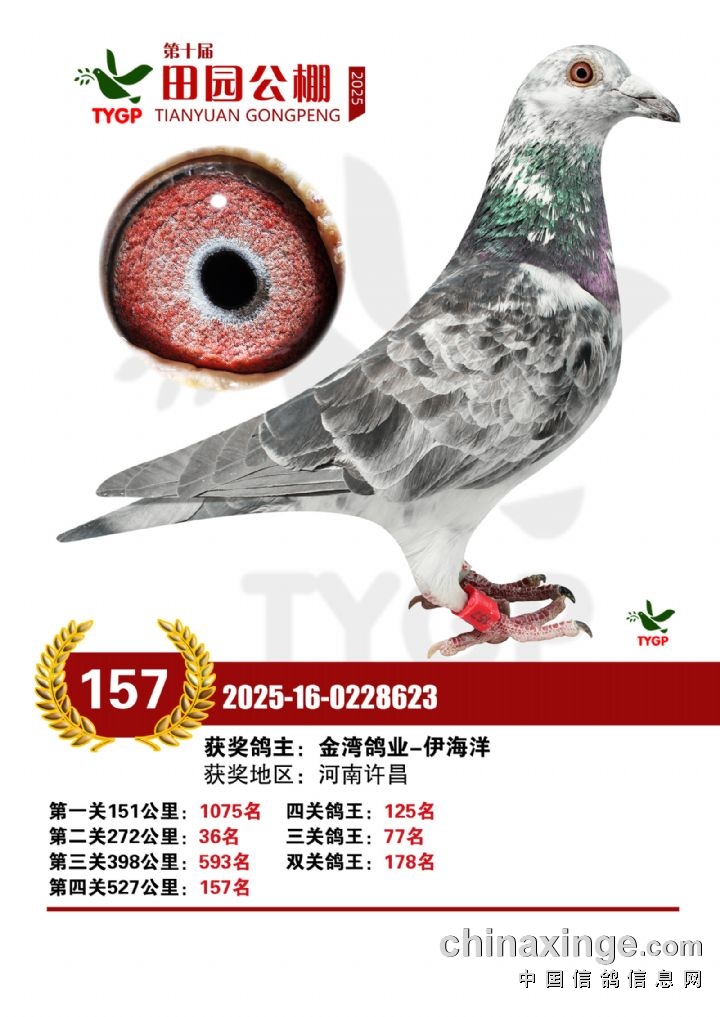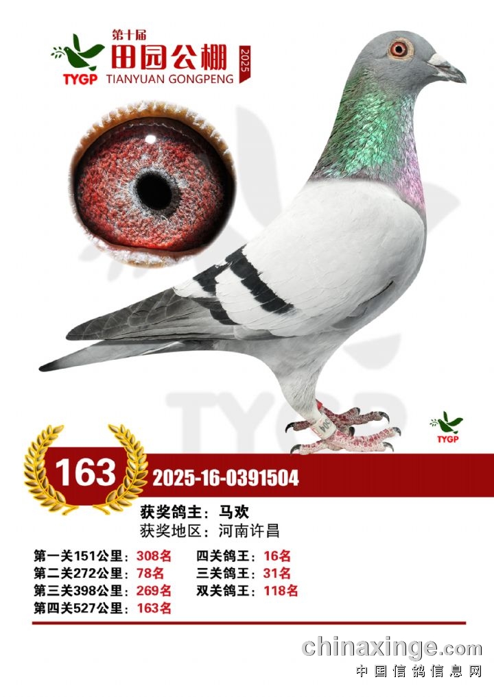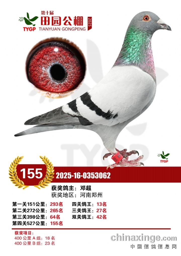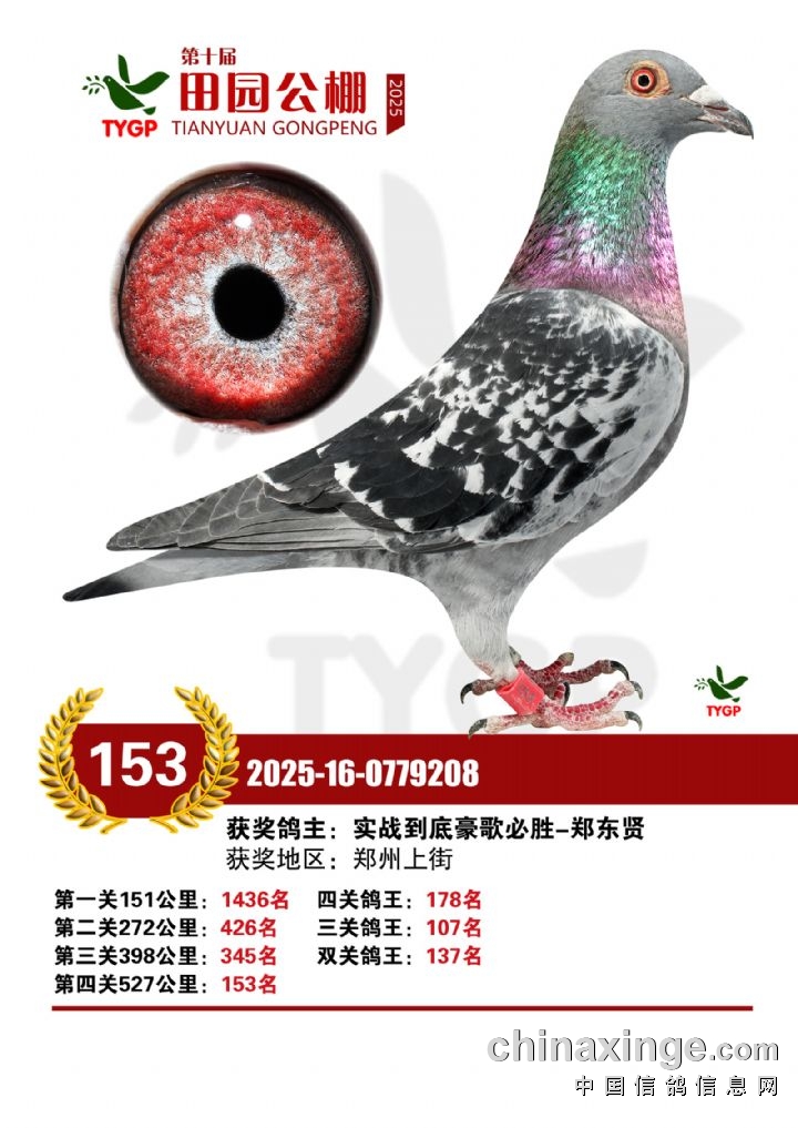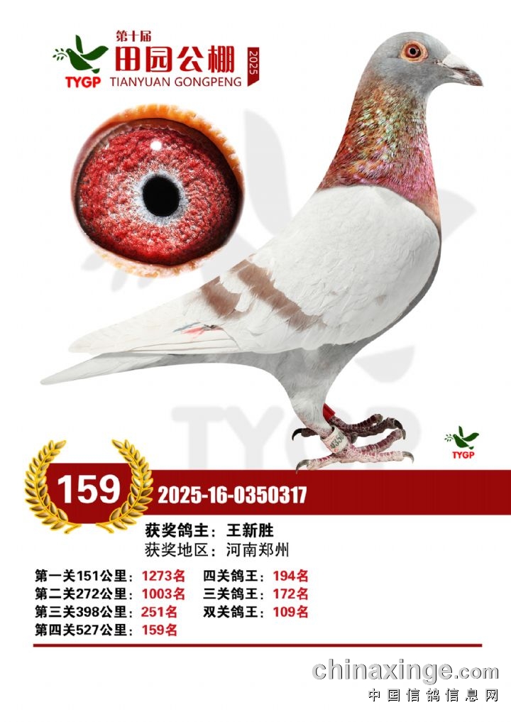 郑州田园公棚决赛获奖鸽照片151-165名