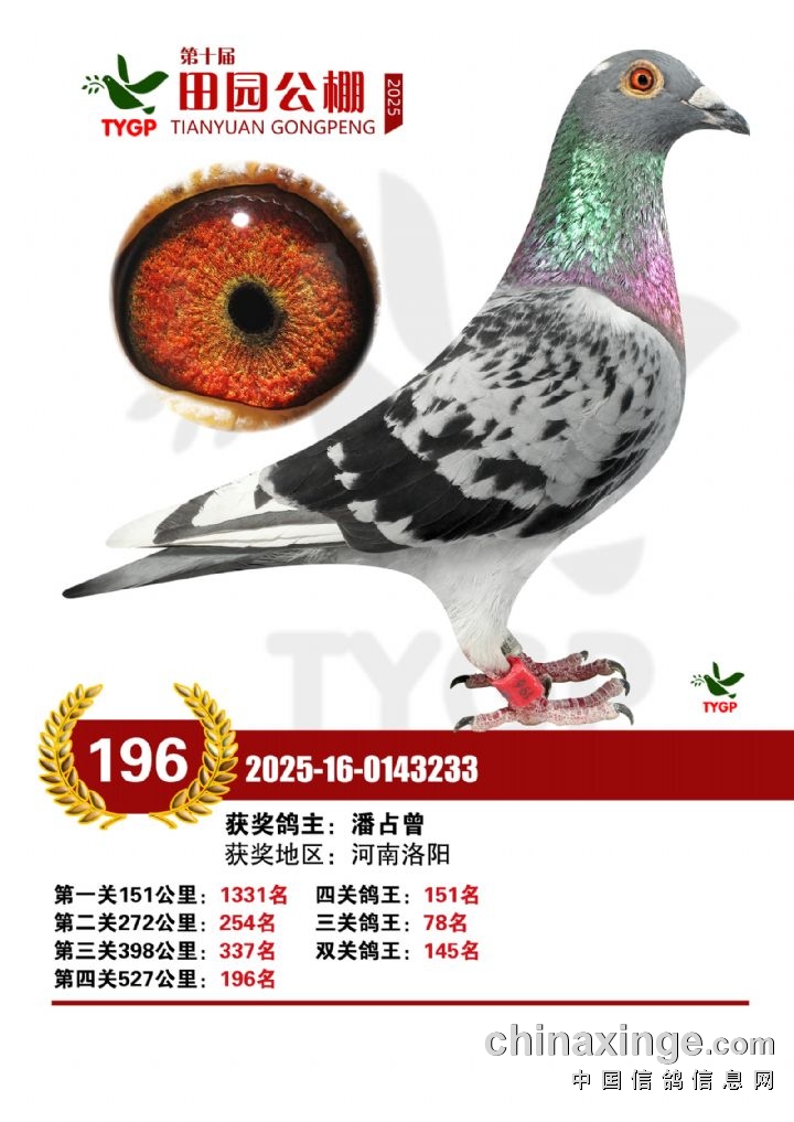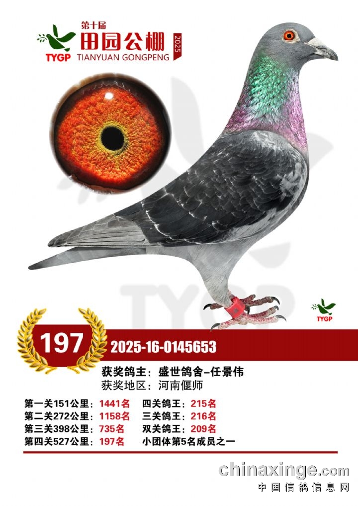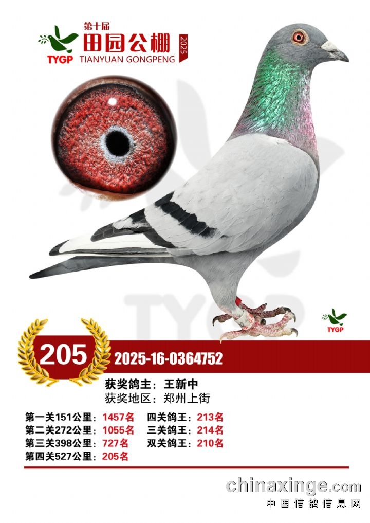 郑州田园公棚决赛获奖鸽照片181-195名