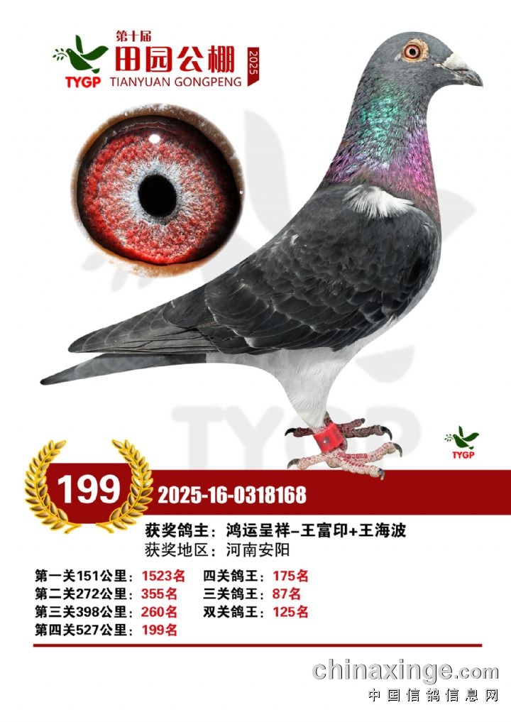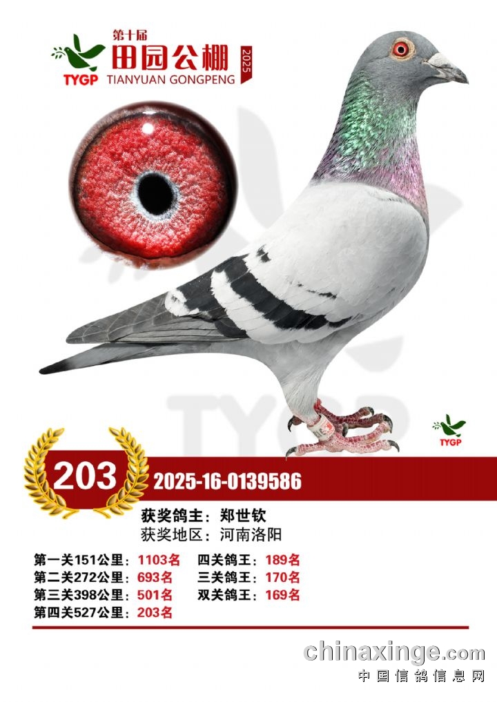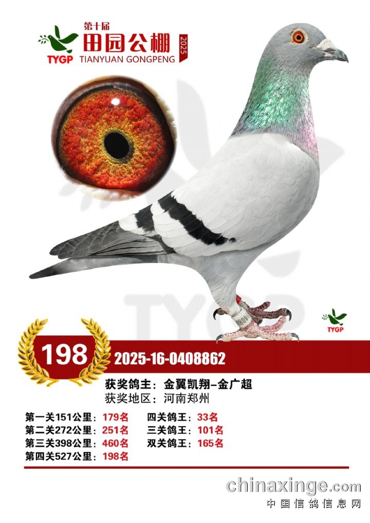 郑州田园公棚决赛获奖鸽照片166-180名