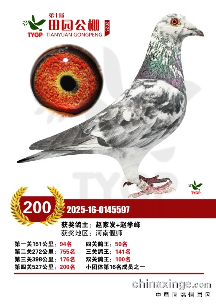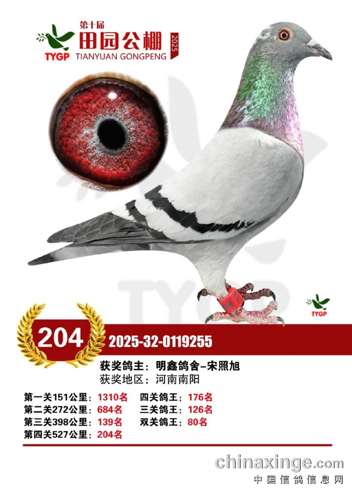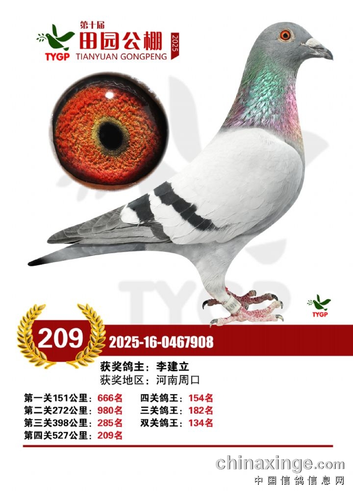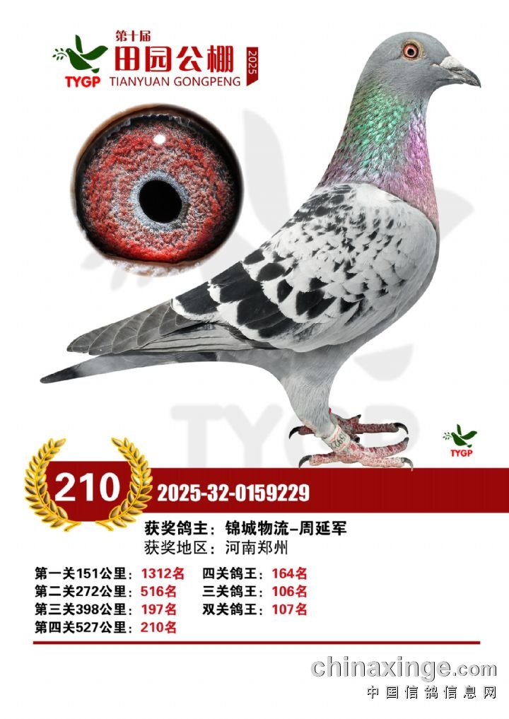 郑州田园公棚决赛获奖鸽照片151-165名