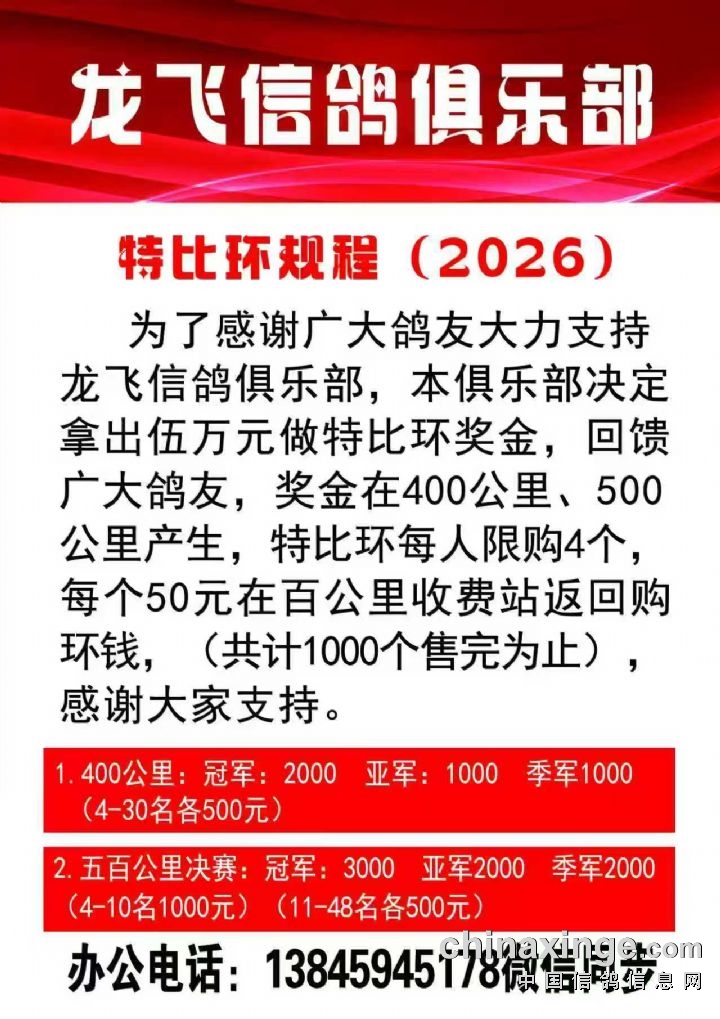 黑龙江龙飞信鸽俱乐部2026年特比环规程