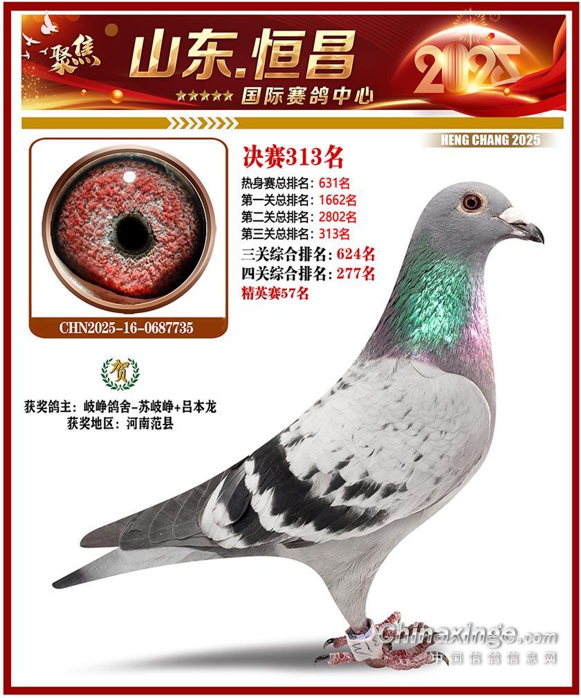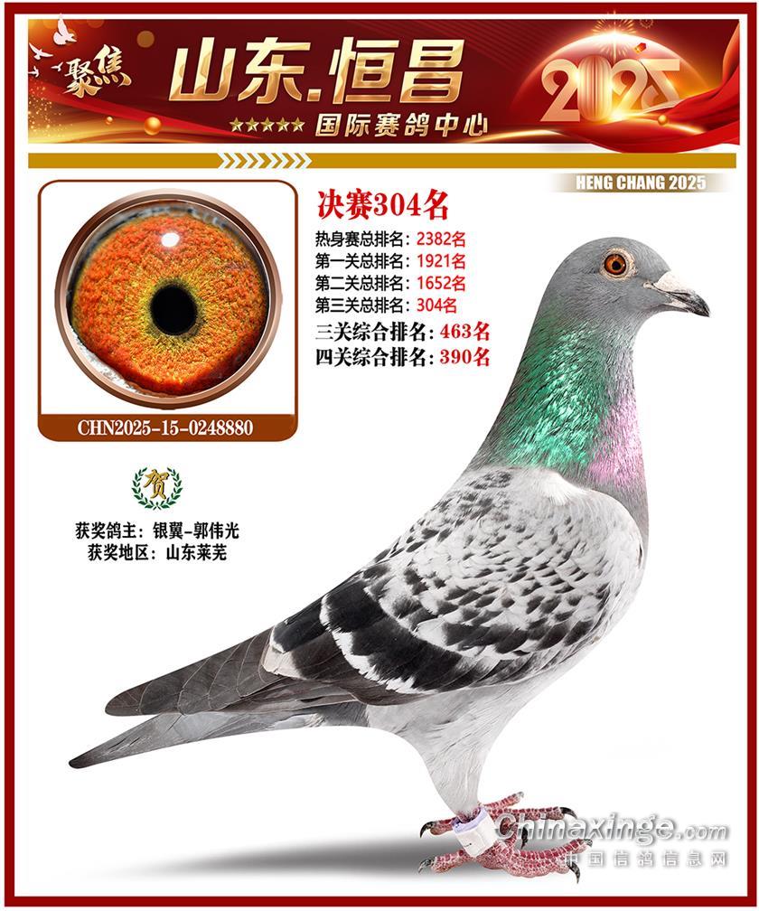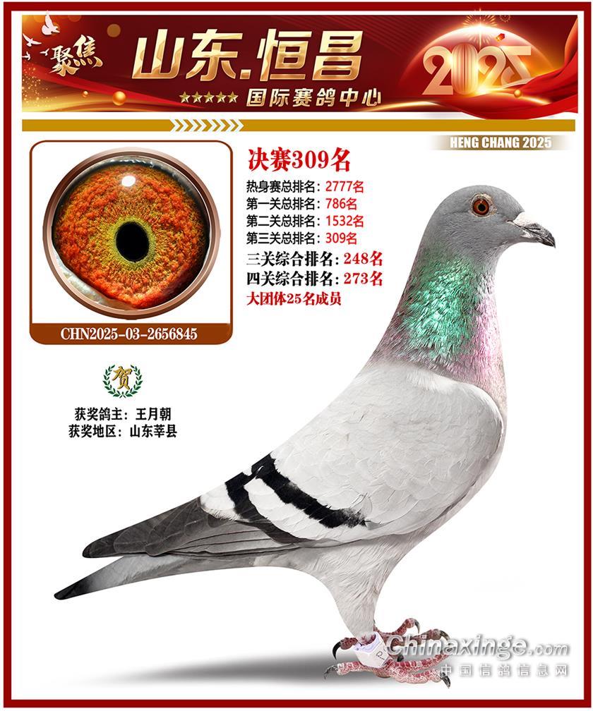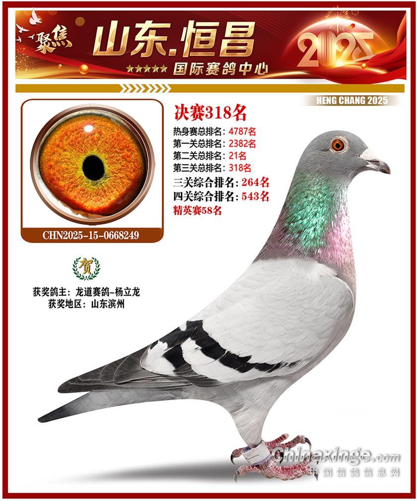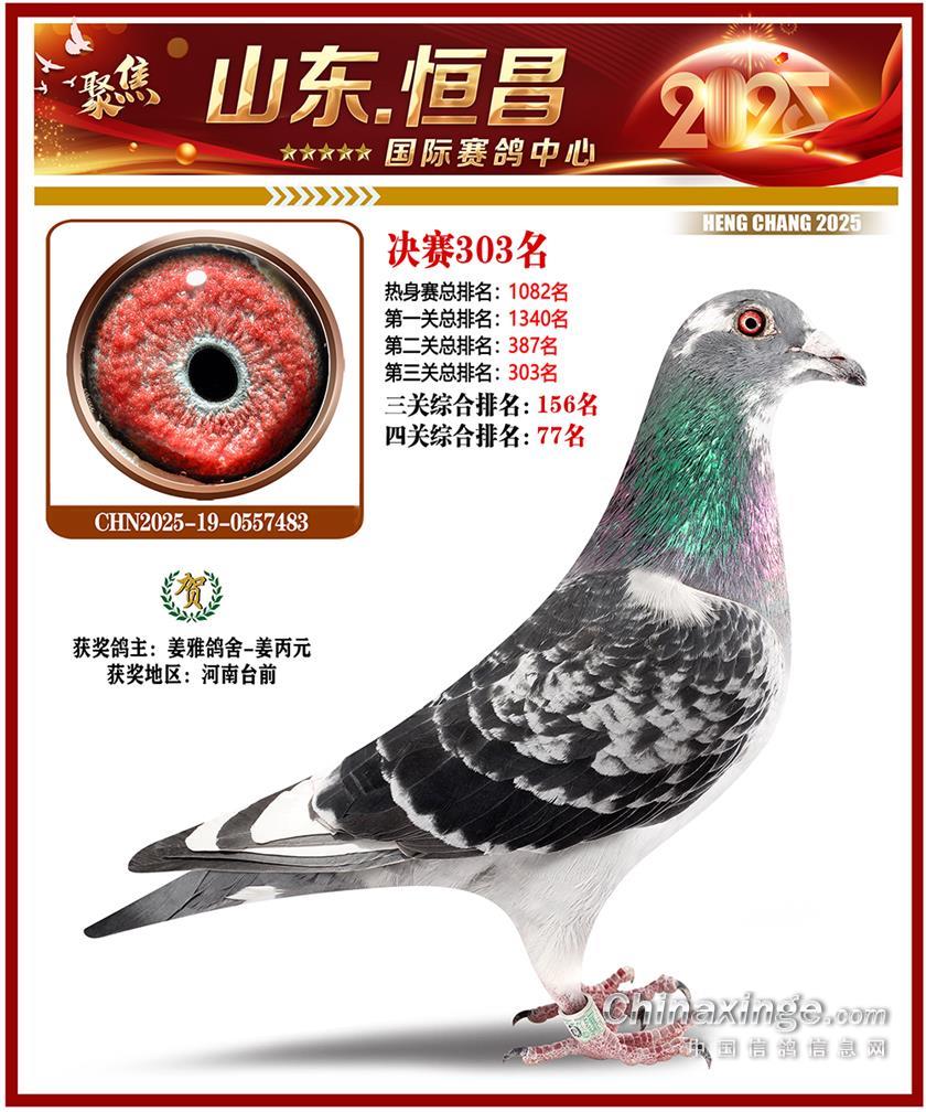 山东恒昌国际赛鸽中心2025年决赛201-300名获奖鸽照片