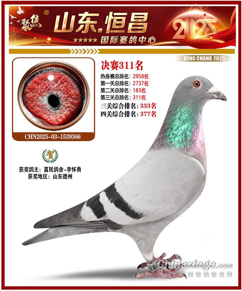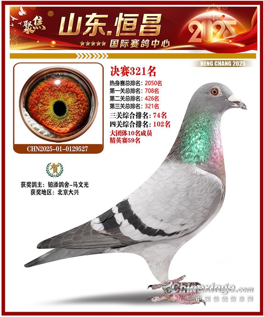 山东恒昌国际赛鸽中心2025年决赛301-400名获奖鸽照片