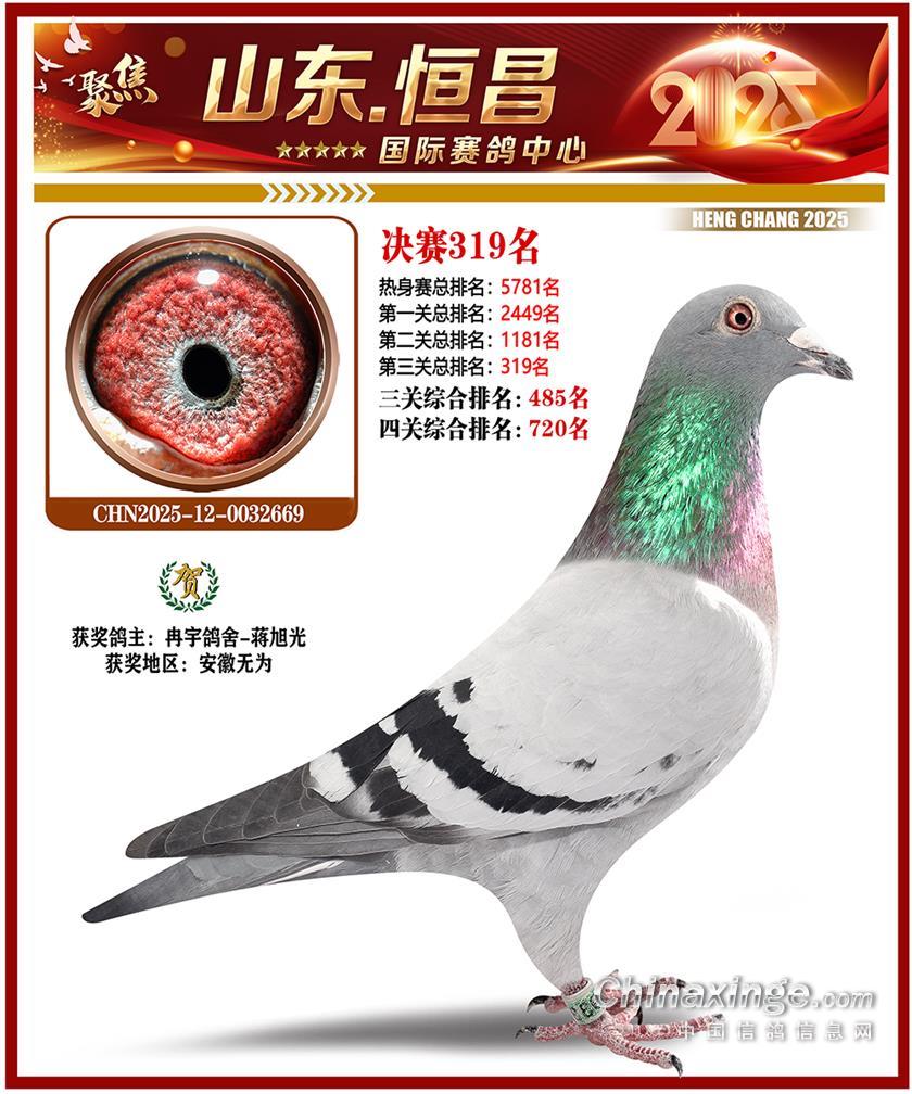 山东恒昌国际赛鸽中心2025年决赛1-100名获奖鸽照片