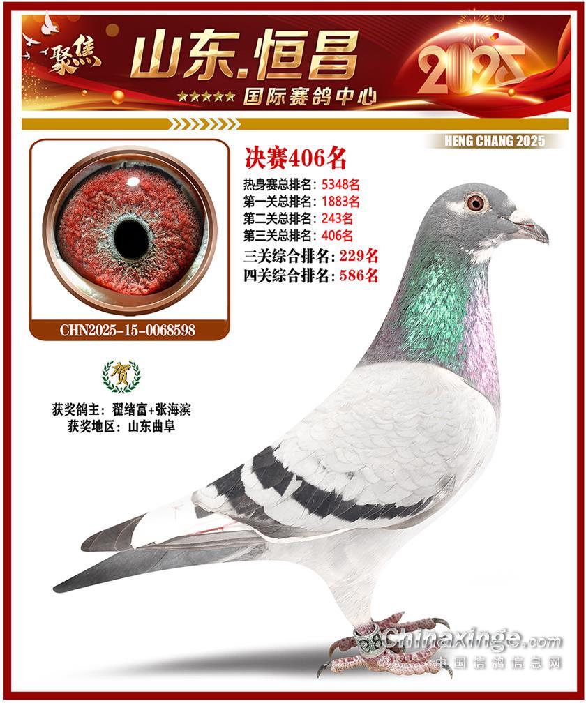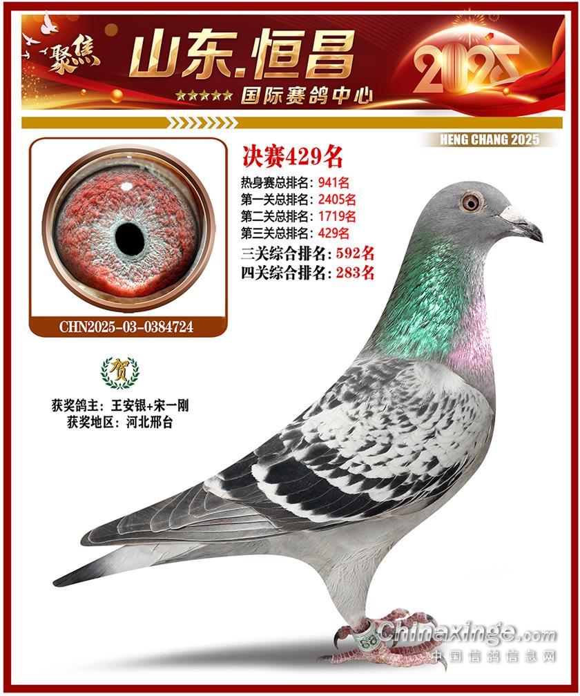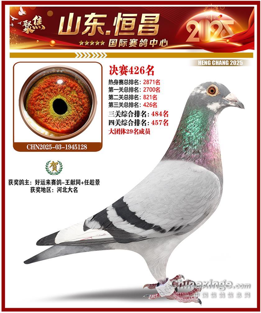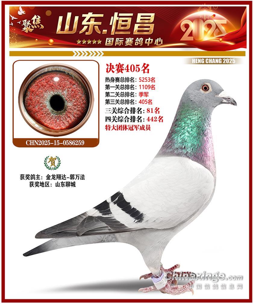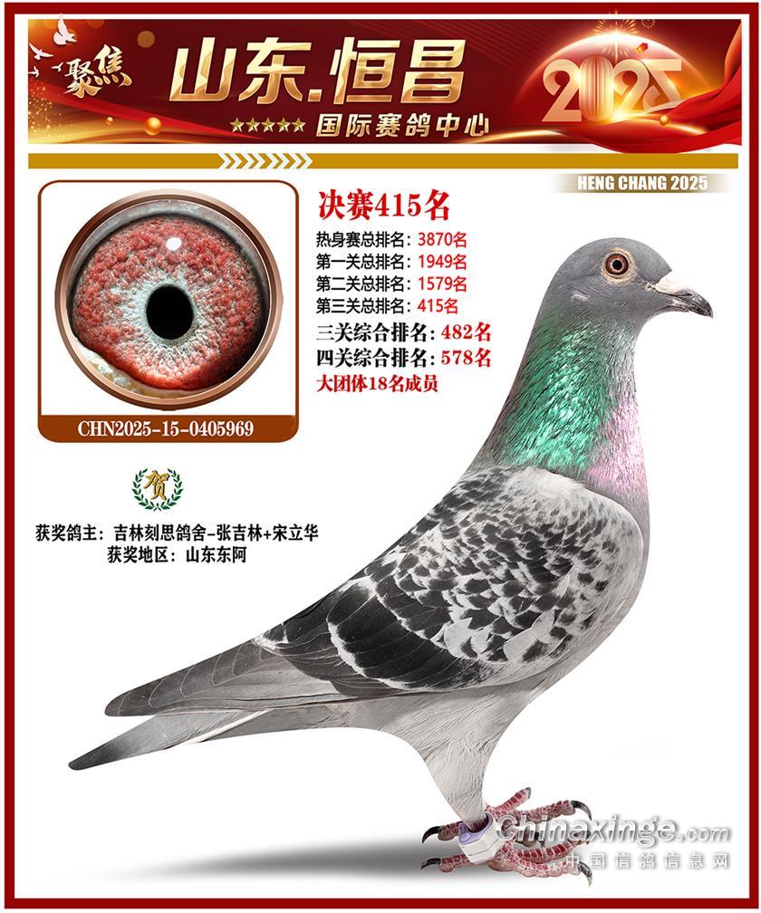 山东恒昌国际赛鸽中心2025年决赛401-500名获奖鸽照片