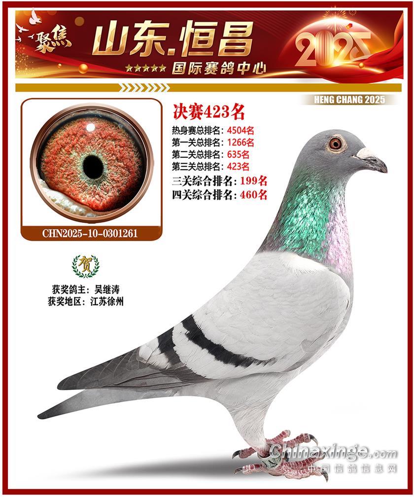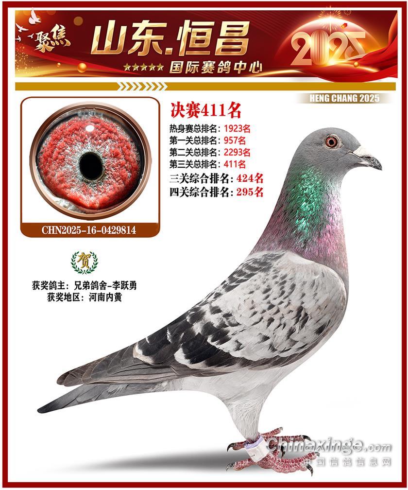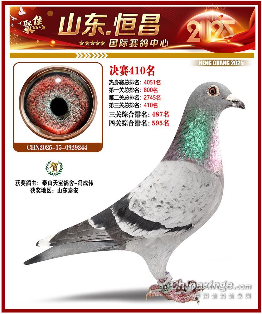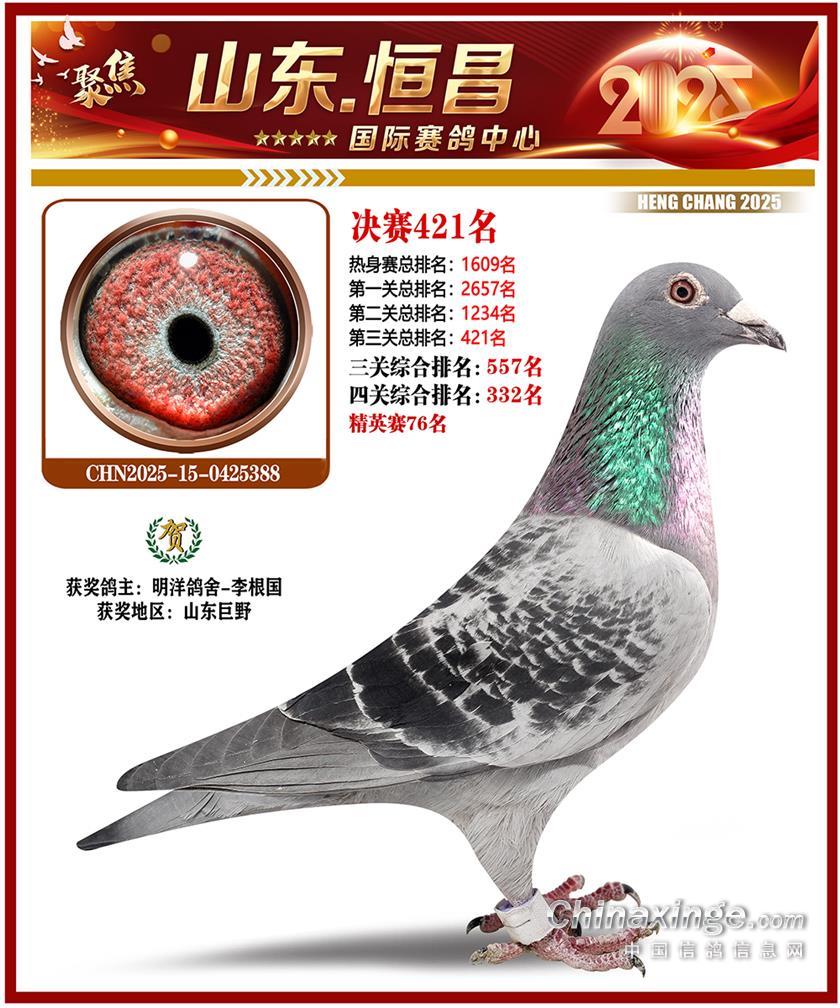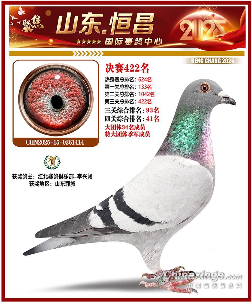 山东恒昌国际赛鸽中心2025年决赛401-500名获奖鸽照片