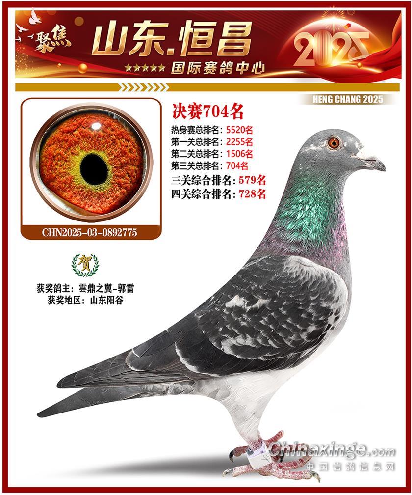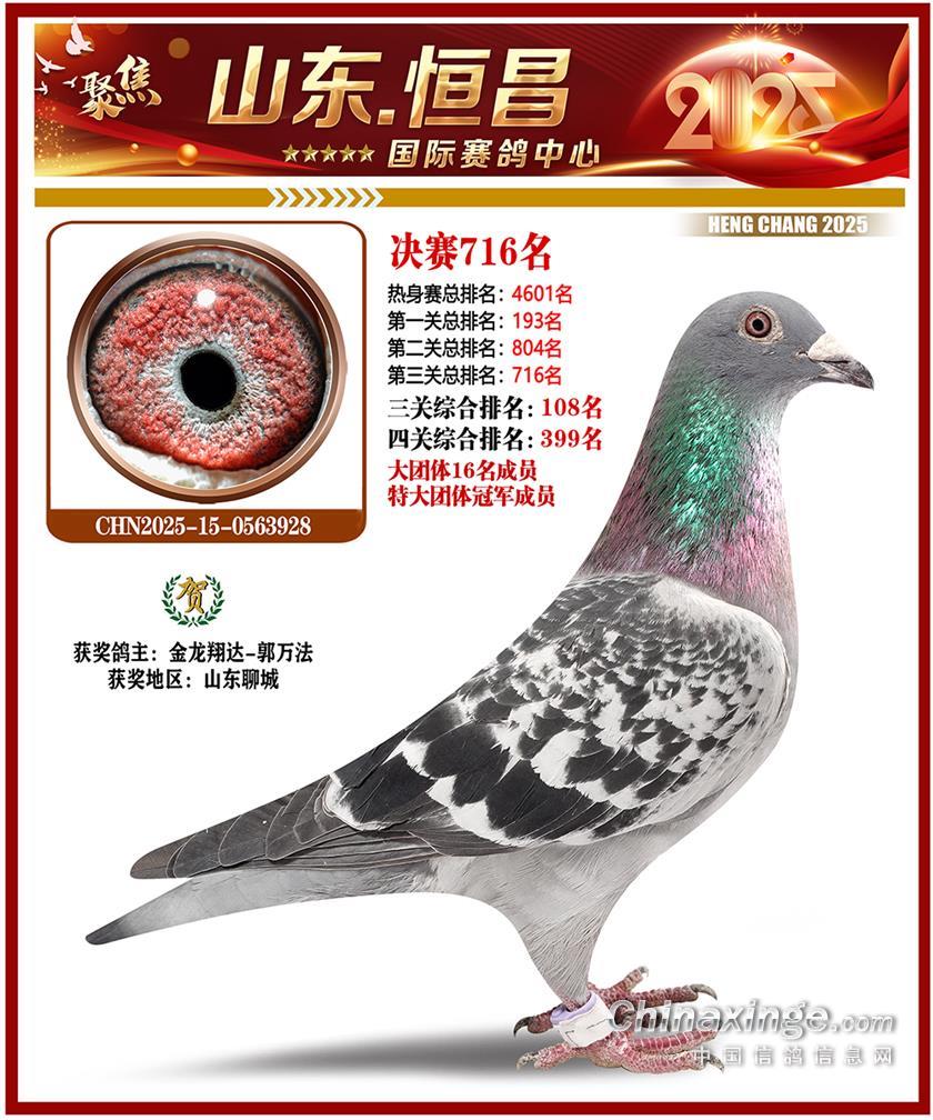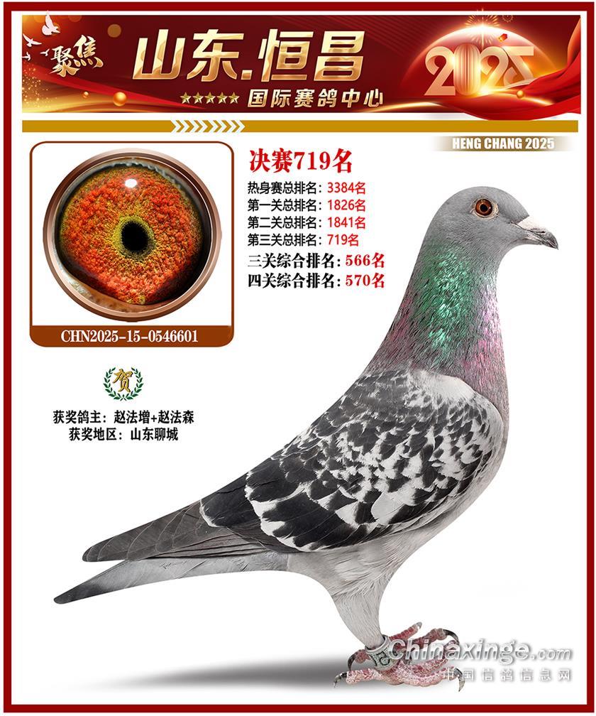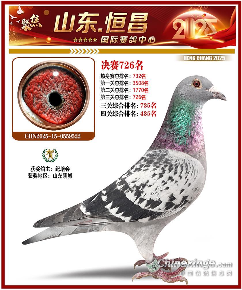 山东恒昌国际赛鸽中心2025年决赛501-600名获奖鸽照片