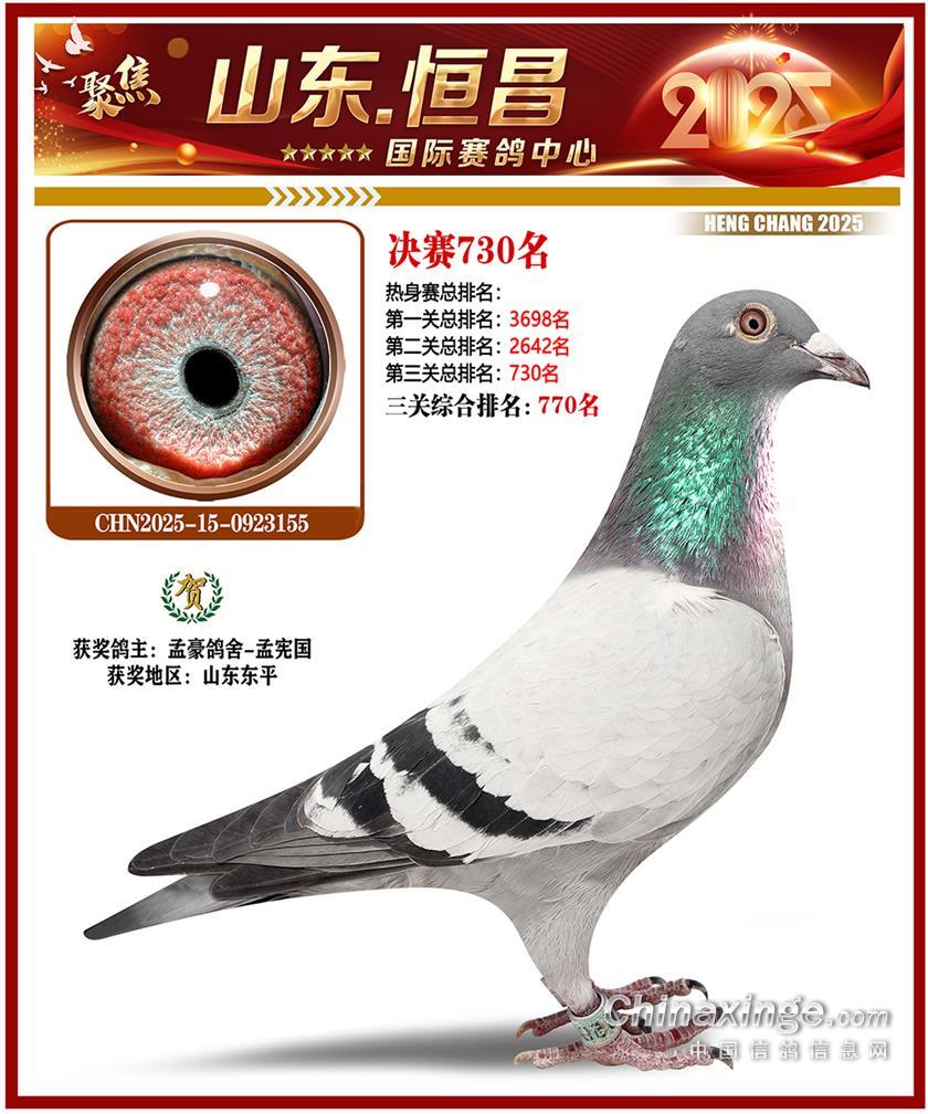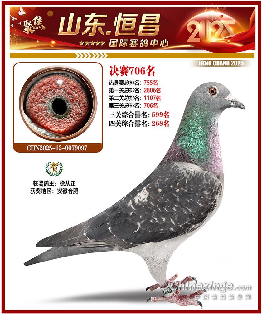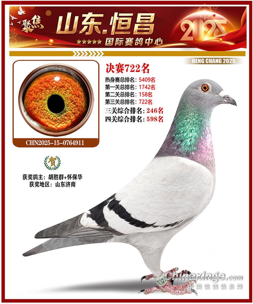 山东恒昌国际赛鸽中心2025年决赛1-100名获奖鸽照片