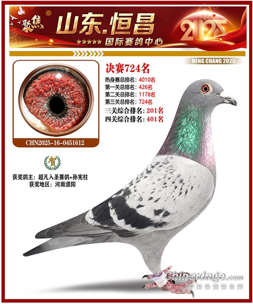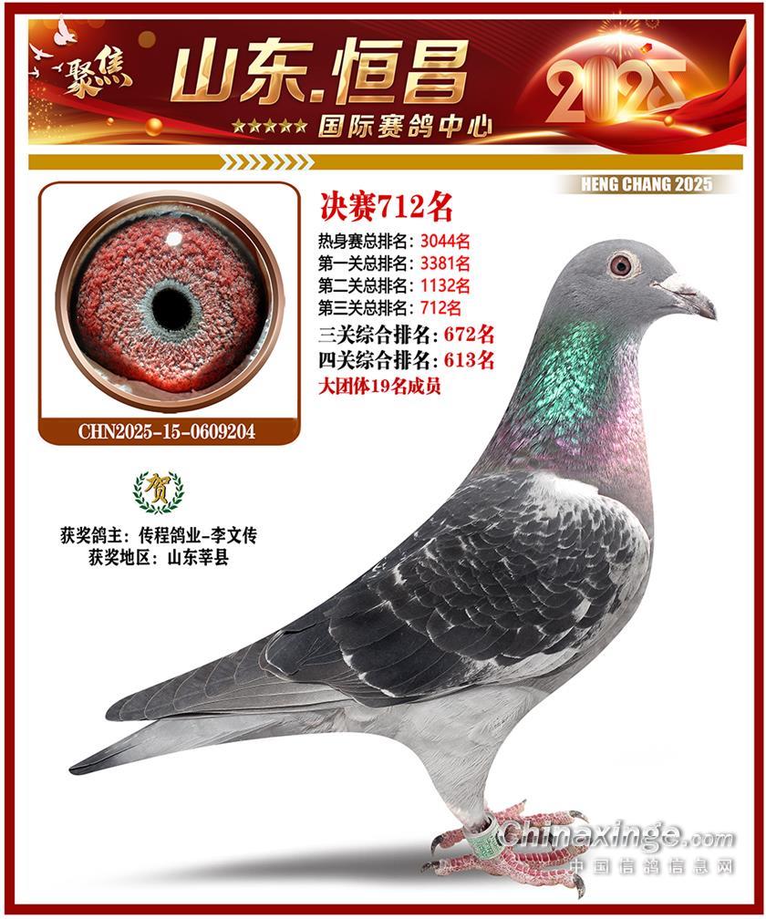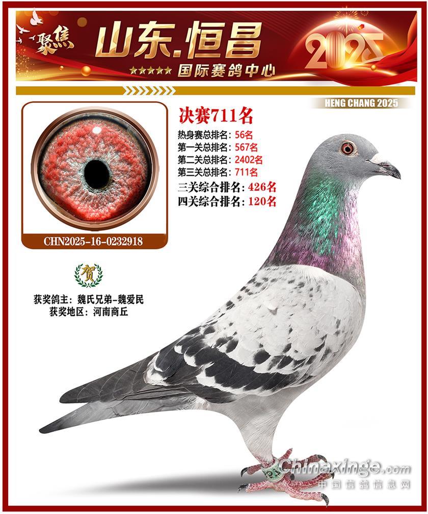 山东恒昌国际赛鸽中心2025年决赛101-200名获奖鸽照片