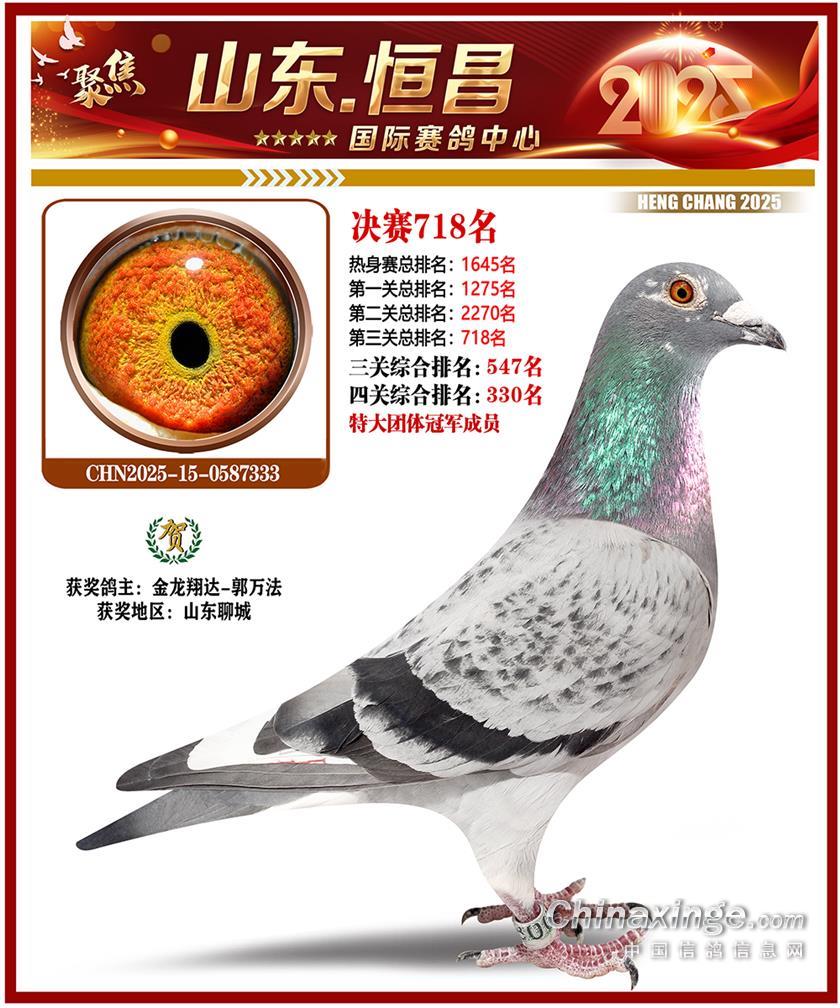 山东恒昌国际赛鸽中心2025年决赛301-400名获奖鸽照片