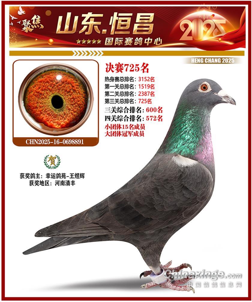 山东恒昌国际赛鸽中心2025年决赛601-700名获奖鸽照片
