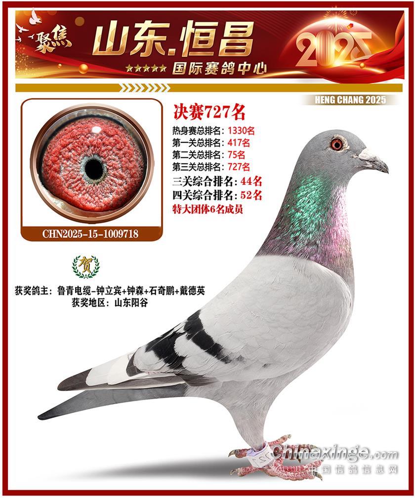 山东恒昌国际赛鸽中心2025年决赛201-300名获奖鸽照片