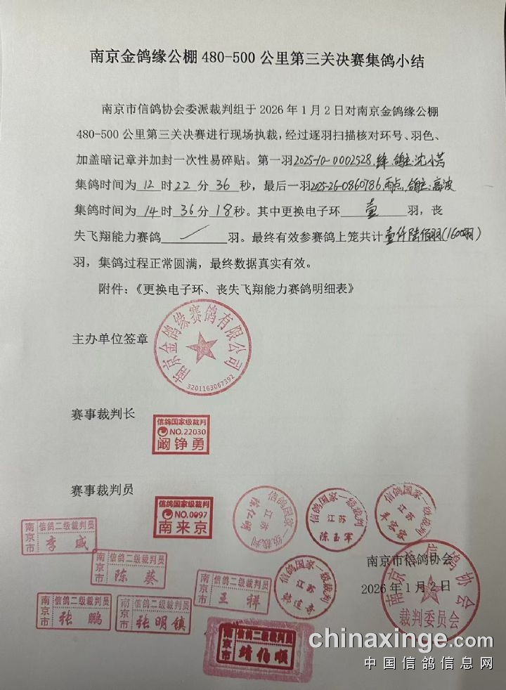 南京金鸽缘:第三关480-500公里决赛集鸽小结