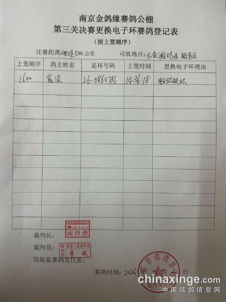 南京金鸽缘:第二关360-400公里复赛开笼信息及扫描直播