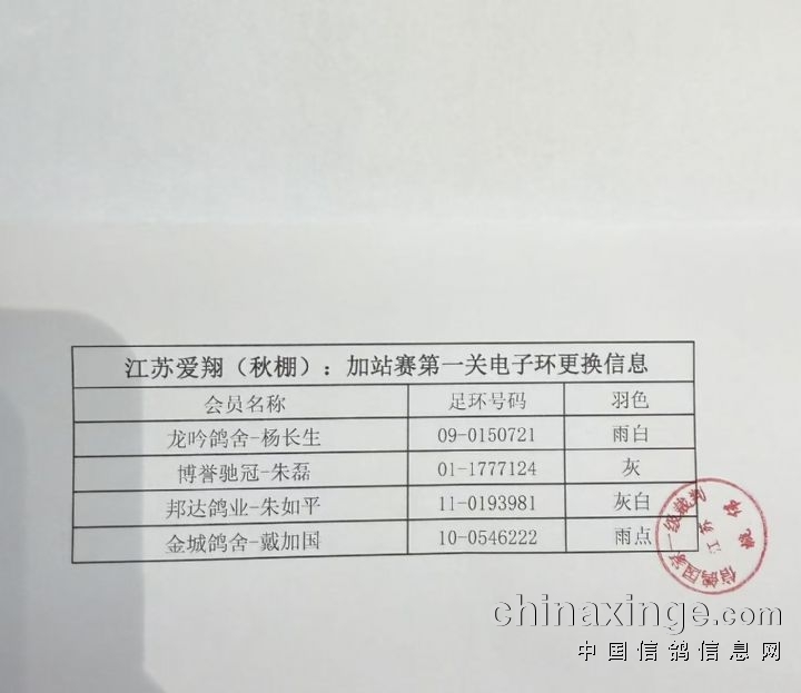 江苏爱翔(秋棚):加站赛第一关上笼清单--汇总