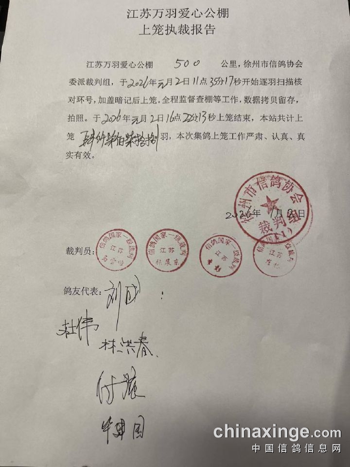江苏万羽:500公里决赛集鸽上笼清单(按顺序)