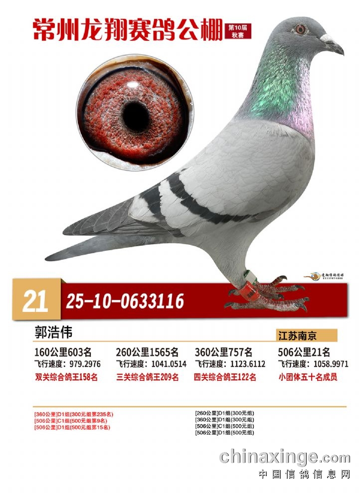 常州龙翔:2025年决赛获奖鸽靓照 21-25名