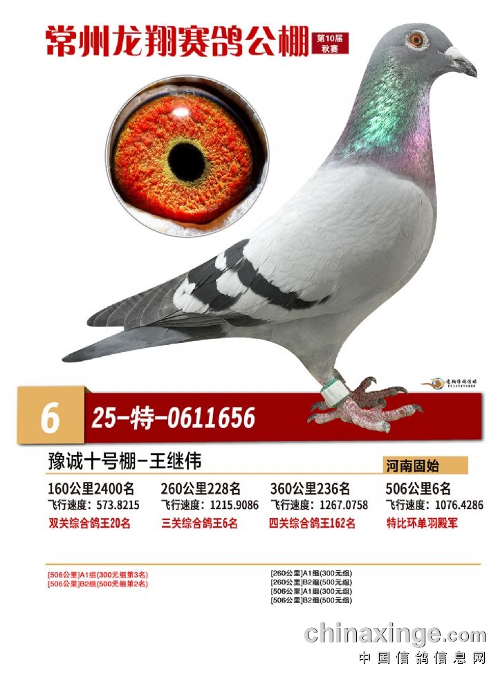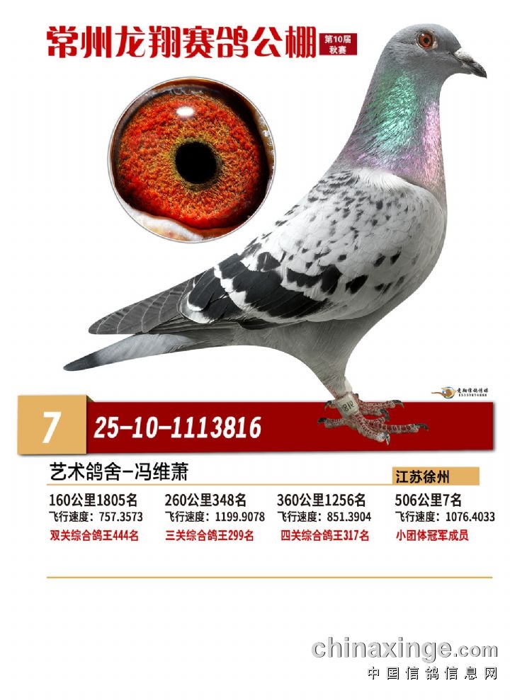常州龙翔:2025年决赛获奖鸽靓照 6-10名